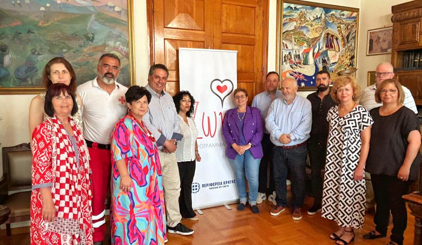 Το πρωτοποριακό πρόγραμμα πρόληψης «ΖΩΗ» της Περιφέρειας Κρήτης παρουσιάστηκε, την Πέμπτη, 6 Ιουνίου, σε ειδική εκδήλωση στην Περιφερειακή Ενότητα Ρεθύμνου με τη συμμετοχή του Αναπληρωτή Περιφερειάρχη, Γιώργου Πιτσούλη, της Αντιπεριφερειάρχη Ρεθύμνου, Μαρίας Λιονή, της Αντιδημάρχου Κοινωνικής Πολιτικής Δήμου Ρεθύμνης, Άννας Ελευθεριάδου – Γκίκα, του Αντιδημάρχου Αθλητισμού Ρεθύμνης, Νίκου Προβιά, του Αντιδημάρχου Υγείας - Πρόνοιας και Κοινωνικής Πολιτικής του Δήμου Αμαρίου, Μανώλη Ψαρουδάκη, του Εντεταλμένου Συμβούλου Αθλητισμού Δήμου Αμαρίου, Γιάννη Καρπουζάκη, της Εντεταλμένης Συμβούλου Τουρισμού Αγίου Βασιλείου, Ελένης Βαρδάκη, της Προέδρου του Ιατρικού Συλλόγου Ρεθύμνης, Αναστασίας Καπελέρη, της Διευθύντριας Δημόσιας Υγείας και Κοινωνικής Μέριμνας της Περιφερειακής Ενότητας Ρεθύμνου, Μαρίας Καββάλου, της Προέδρου του Περιφερειακού Τμήματος Ερυθρού Σταυρού Ρεθύμνου, Ευαγγελίας Ηλιάκη, του Υπευθύνου Σαμαρειτών Ρεθύμνου, Γιώργου Κακλαμάνου και του μέλους της Εθελοντικής Ομάδας Σεμιναρίων BLS (Pediatric life support , υπό την αιγίδα του ABLS Crete και του Ιατρικού Συλλόγου Ρεθύμνου), Όλγας Πανταγιά.