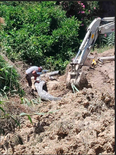 Τα συνεργεία της ΔΕΥΑΡ επί μέρες αναζητούσαν το σημείο της διαρροής και μετά από επίπονες προσπάθειες και την αντιμετώπιση σοβαρών τεχνικών δυσκολιών, το εντόπισαν σε βάθος 7 μέτρων και σε δύσβατη περιοχή, όπως άλλωστε φαίνεται από τις επισυναπτόμενες φωτογραφίες.