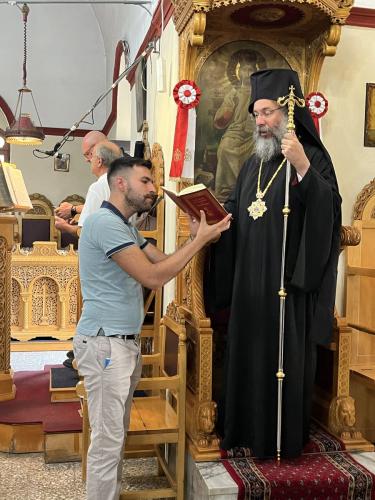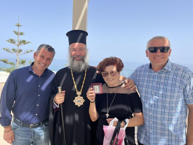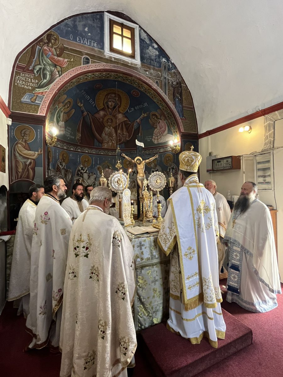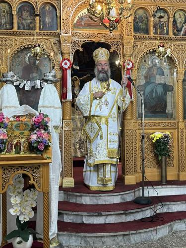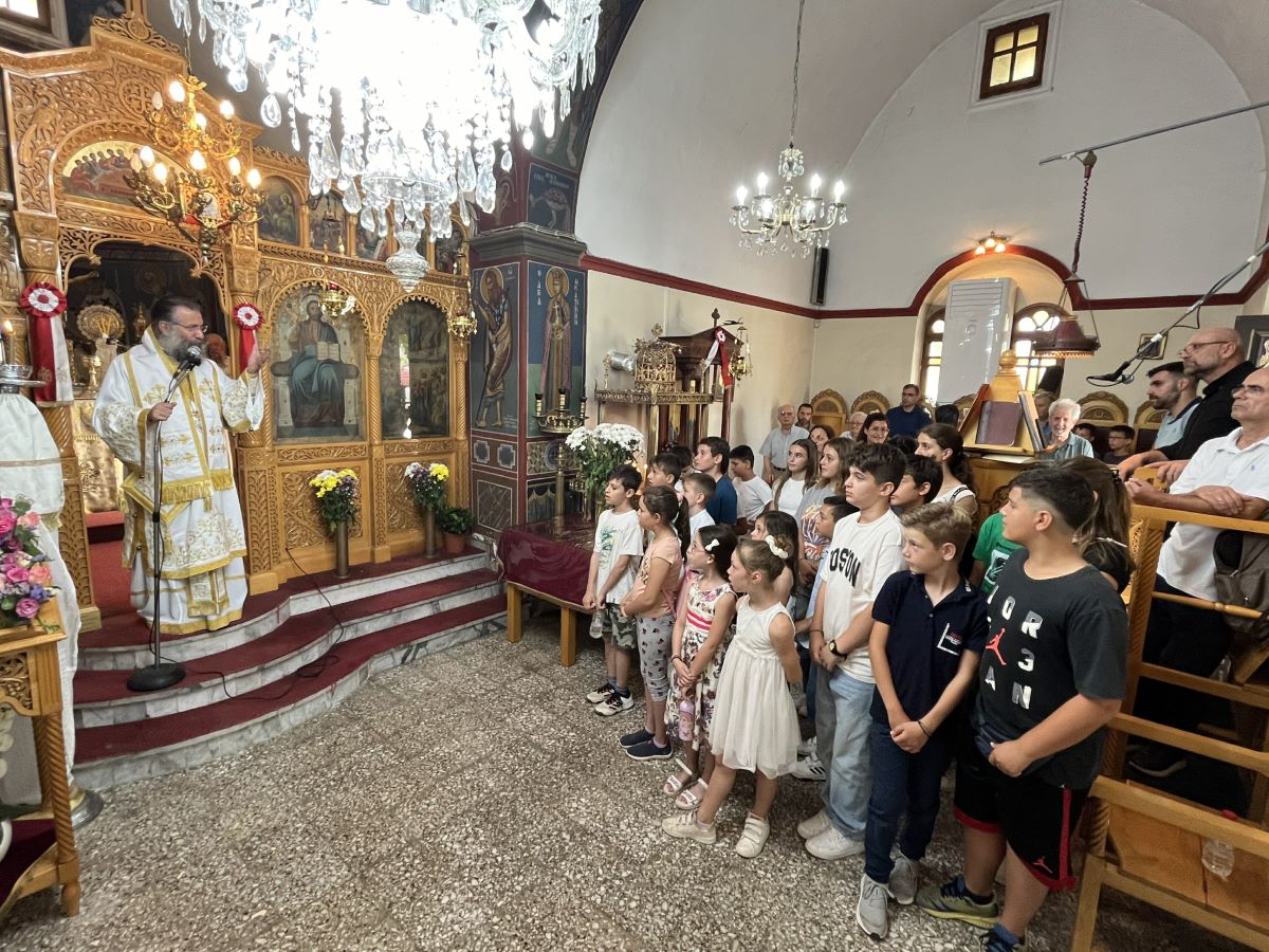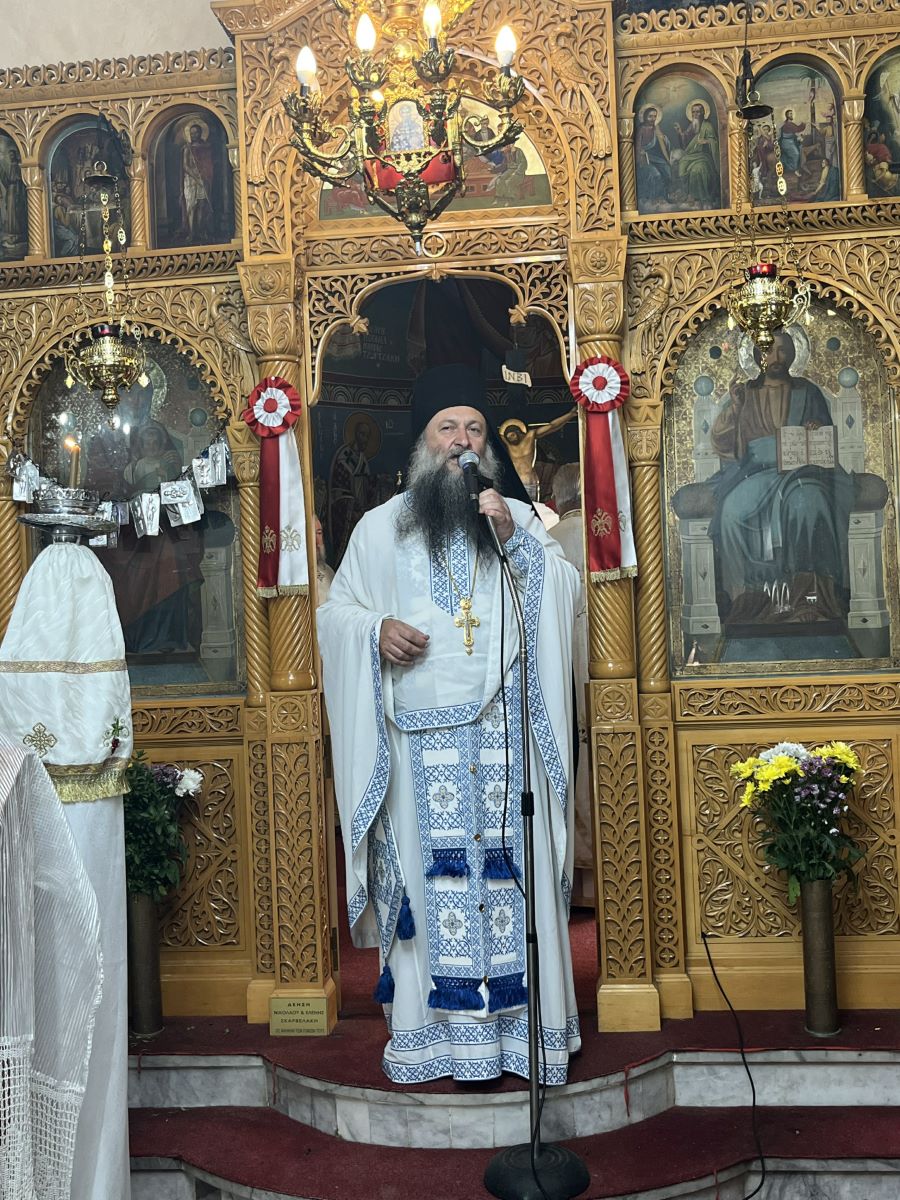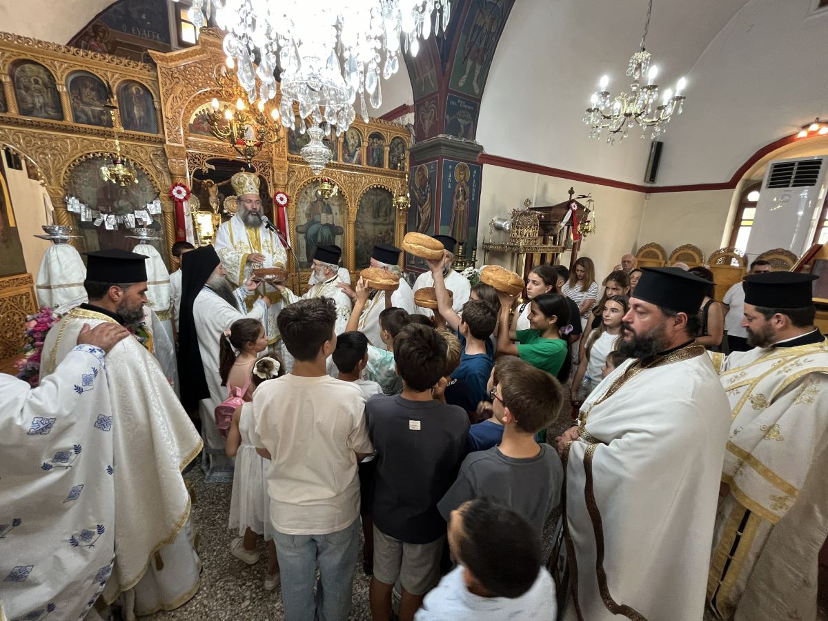 Ο Σεβασμιώτατος, προ της απολύσεως της Θείας Λειτουργίας, εξέφρασε τις ευχαριστίες του στον άγιο Καθηγούμενο, στον Εφημέριο της Ενορίας, Αιδεσιμολ. Πρωτοπρεσβύτερο Ηλία Κοτζαμπασάκη, και τους καλούς τους συνεργάτες, στους κληρικούς και τους πιστούς που προσήλθαν, παρά τον έντονο καύσωνα της ημέρας, και στους μικρούς μαθητές του Δημοτικού Σχολείου Πανόρμου, οι οποίοι εκκλησιάσθηκαν με τη συνοδεία των διδασκάλων τους.