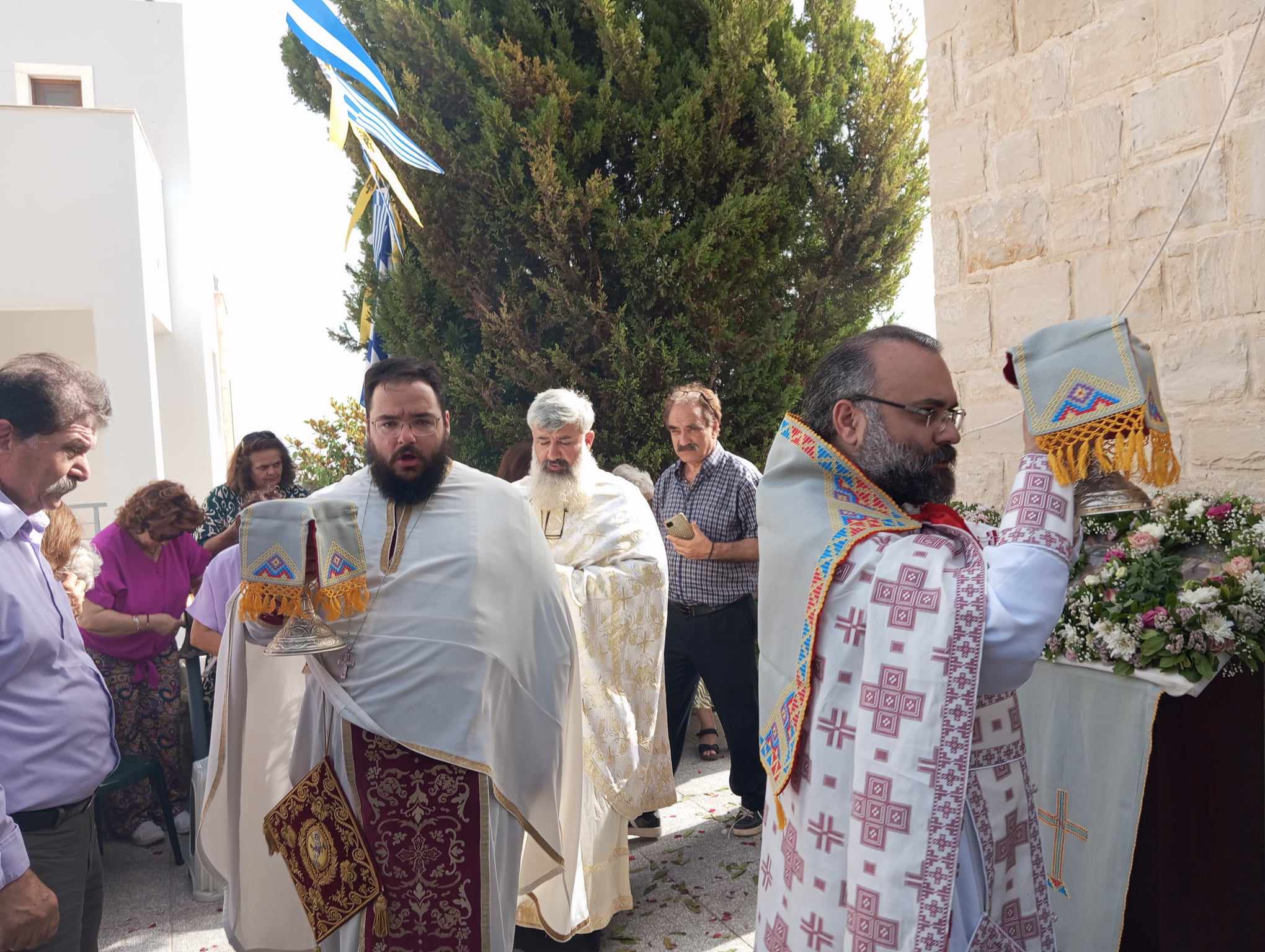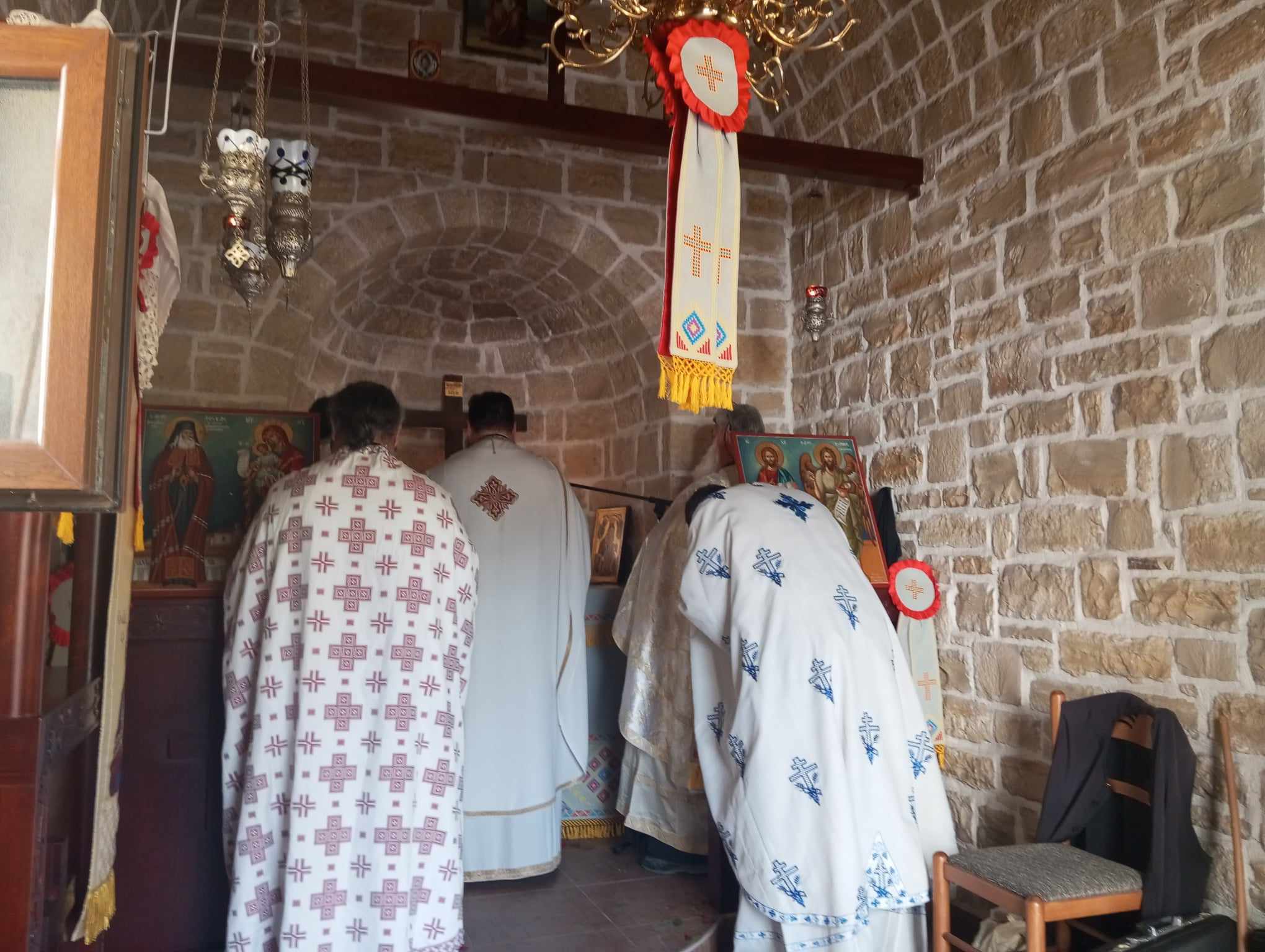 Της Θείας Λειτουργίας προεξείχε ο Ηγούμενος της Ιεράς Μονής Αρσανίου Πανοσ. Ευφραίμ Μανουσάκης, ο οποίος είναι και ανάδοχος της εκκλησίας και μαζί του συλλειτούργησαν οι ιερείς π. Παντελής Σακελλαρίδης, Εμμανουήλ Πολυχρονάκης, Αθανάσιος Δραμυτινός και οι πατέρες Νικόλαος Τσαγκαράκης και Γεώργιος Παπαδοβασιλάκης από τις Μοίρες, όπου είχε έρθει ένα λεωφορείο με προσκυνητές από το χωριό της κ. Ραπτάκη την Νίβρυτο.