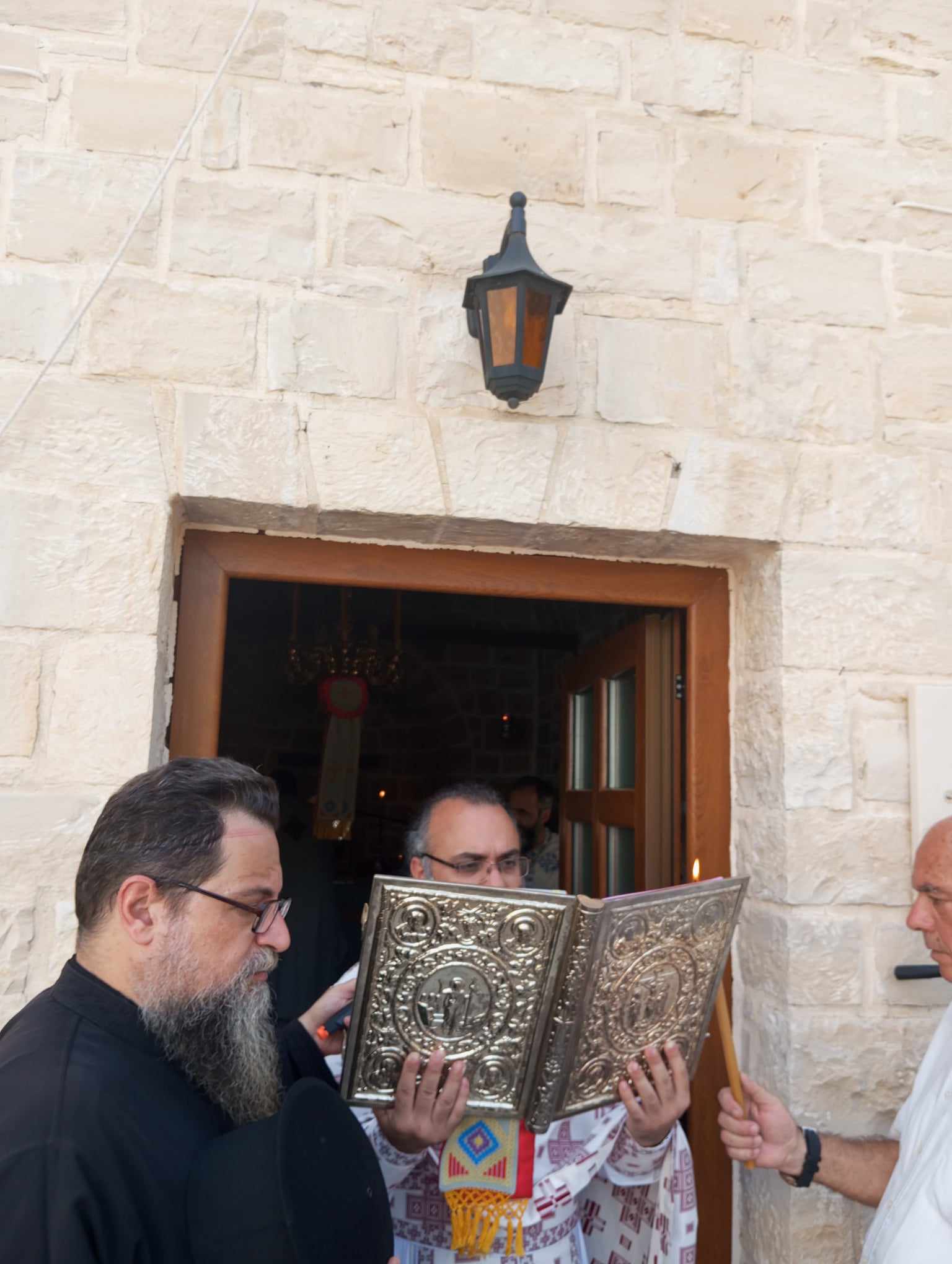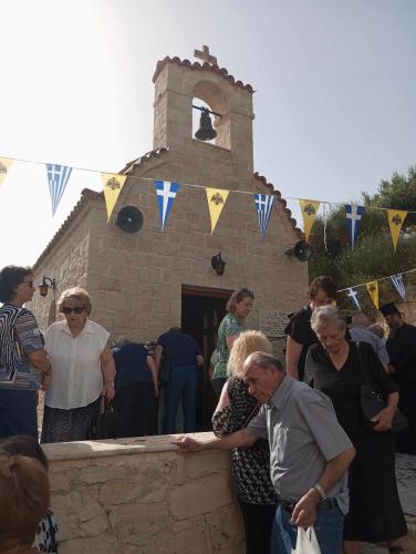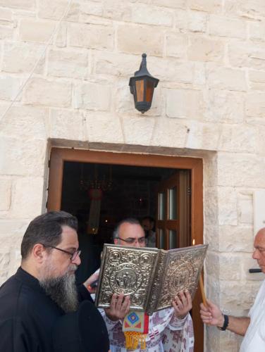 Τελειώνοντας θα πρέπει να σας πω ότι τα πάντα είναι όμορφα όταν μοιράζονται. Μετά λοιπόν το μοίρασμα της πνευματικής μας τροφής στην Θεία Λειτουργία, σας παρακαλώ να μην φύγει κανένας και όλοι μαζί όπως είμαστε εδώ, αφού πάρουμε το αντίδωρο και τον καφέ που θα πάρουμε εδώ έξω, να μπούμε μέσα στο σπίτι, όπου έχει στρωθεί τράπεζα και μαζί να δοξάσουμε τον καλό μας Θεό και για πλούσια αγαθά που μας έχει προσφέρει. Να πιούμε ένα κρασί και να νοιώσουμε σαν τους πρώτους Χριστιανούς.