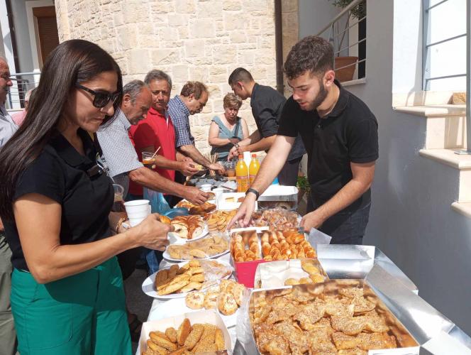 Η οικ. Ραπτακη όπως κάνουν πάντα κατά αρχάς πρόσφεραν καφέ και διάφορα εδέσματα στην πανέμορφη αυλή της οικίας τους. Στην συνέχεια παρέθεσαν πλουσιοπάροχο τραπέζι και όλοι γεύτηκαν την αβραμιαία φιλοξενία τους. Εκ μέρους της εφημερίδας μας ευχαριστούμε τον Μανώλη και την Άννα για άψογη φιλοξενία τους και τους ευχόμαστε ο Προστάτης τους Άγιος να τους χαρίζει υγεία και όλα τα καλά του Θεού στο σπίτι τους. Να χαίρονται τον Νικόλα και να τα εκατοστίσουν ευτυχισμένοι!