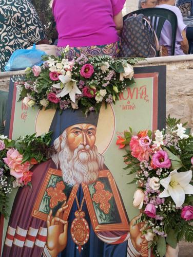 Επίσης συμπροσευχόμενος παρέστη ο π. Παναγιώτης Παπαδάκης, ενώ το αναλόγιο διακόνησαν ο Πάνοσ. Αρχιμανδρίτης Ρωμανός Αναστασιάδης όπου με την μελωδική ψαλμωδία του ήταν μια μυσταγωγία η Θεία Λειτουργία, μαζί του επίσης έψαλε ο π. Σταμάτης Λαριος. Ο Ποιμενάρχης μας κ.κ. ΠΡΟΔΡΟΜΟΣ δεν ήταν δυνατό να παρευρεθεί φέτος λόγω του ότι βρισκόταν στην Κωνσταντινούπολη μέλος της αντιπροσωπείας της Ιεράς Επαρχιακής Συνόδου της εκκλησίας της Κρήτης, προκειμένου να υποβάλλουν τα σεβάσματα τους στον Οικουμενικό μας Πατριάρχη κ.κ. Βαρθολομαίο, για τις εορτές εκδηλώσεις των Σεπτών Ονομαστηρίων του. Επίσης να παραβρεθεί στις εργασίες της Ιεράς Συνόδου ,καθώς είναι μέλος της .