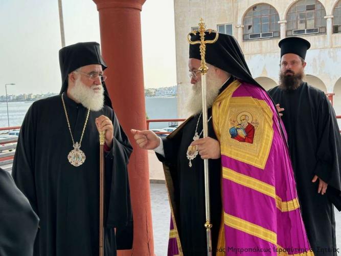 Για τον Σεβ. Μητροπολίτη Ρεθύμνης και Αυλοποτάμου κ. Πρόδρομο σημείωσε ότι μόλις επέστρεψε από την Κων/πολη, όπου μετείχε ως Συνοδικός Αρχιερεύς στις εργασίες της Αγίας και Ιεράς Συνόδου και στα ονομαστήρια της Α.Θ.Π. του Οικουμενικού Πατριάρχου κ.κ. Βαρθολομαίου, κομίζοντας την ευλογία και την χαρά της Μητρός Εκκλησίας. Για τον Θεοφ. Επίσκοπο Κνωσού κ. Μεθόδιο, υπογράμμισε ότι είναι ο «Βενιαμίν» των Ιεραρχών της Εκκλησίας της Κρήτης, ο οποίος έκανε τα πρώτα εκκλησιαστικά βήματά του π. Μεθόδιο Γερογιαννάκη, Εφημέριο του Ι. Ναού Αγίας Τριάδος Ηρακλείου, που αποτελεί παλαιό Μετόχι της Ι. Σταυροπηγιακής Μονής Τοπλού, και αργότερα διετέλεσε Ηγούμενος της Ι. Μονής Αγκαράθου και Πρωτοσύγκελλος της Ι.Α.Κ., διακονώντας με αυταπάρνηση, θυσιαστικό πνεύμα και αγάπη τους πρώην Αρχιεπισκόπους Κρήτης κυρό Τιμόθεο και κ.κ. Ειρηναίο, του ευχήθηκε δε ο Θεός να τον ευλογεί στην αρχιερατική διακονία και πορεία του.