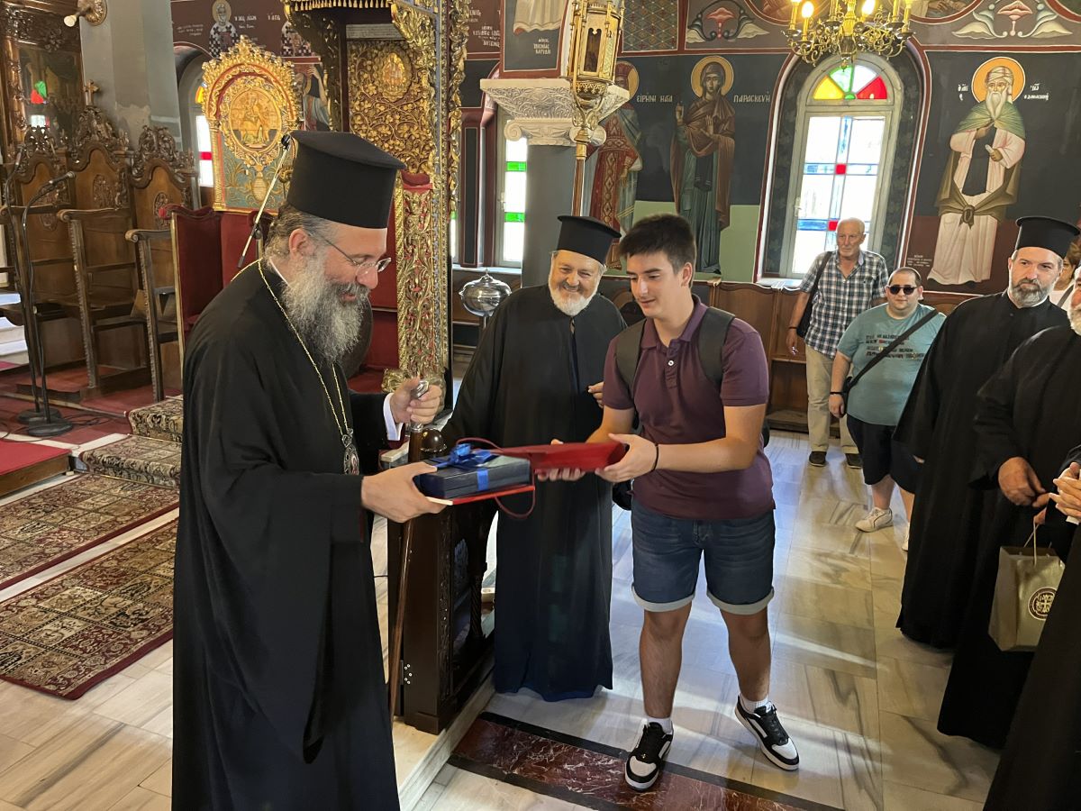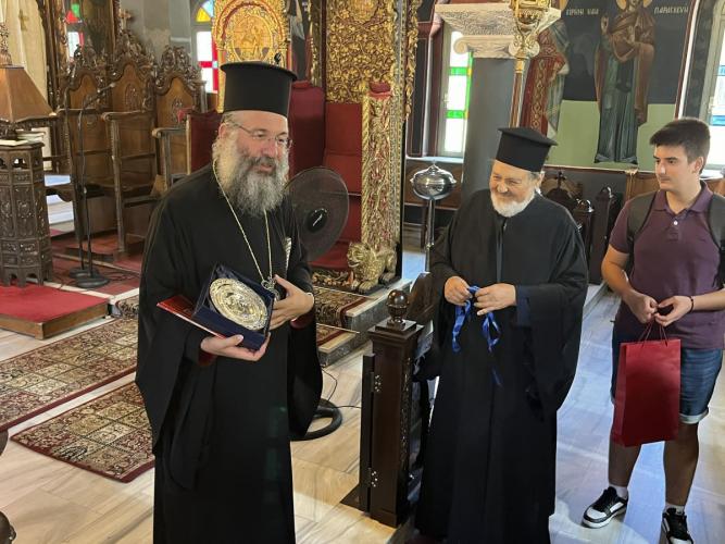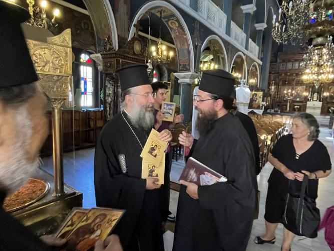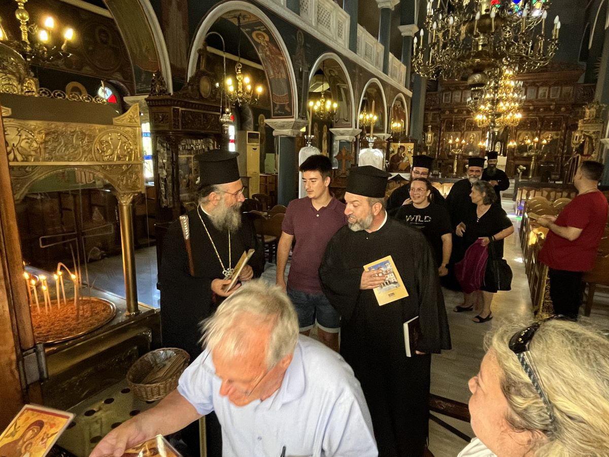 Ο Σεβασμιώτατος Μητροπολίτης Ρεθύμνης και Αυλοποτάμου κ. Πρόδρομος, μαζί με τον Αιδεσιμολ. Πρωτ. Χαράλαμπο Καμηλάκη, Προϊστάμενο του Ιερού Μητροπολιτικού Ναού, υποδέχθηκαν με χαρά τους προσκυνητές, τους ομίλησαν για την ιστορία του Ναού και τους διένειμαν βιβλία και ευλογίες, ευχόμενοι πάντοτε να είναι θεοτοκοσκέπαστη η ζωή και η πορεία τους.