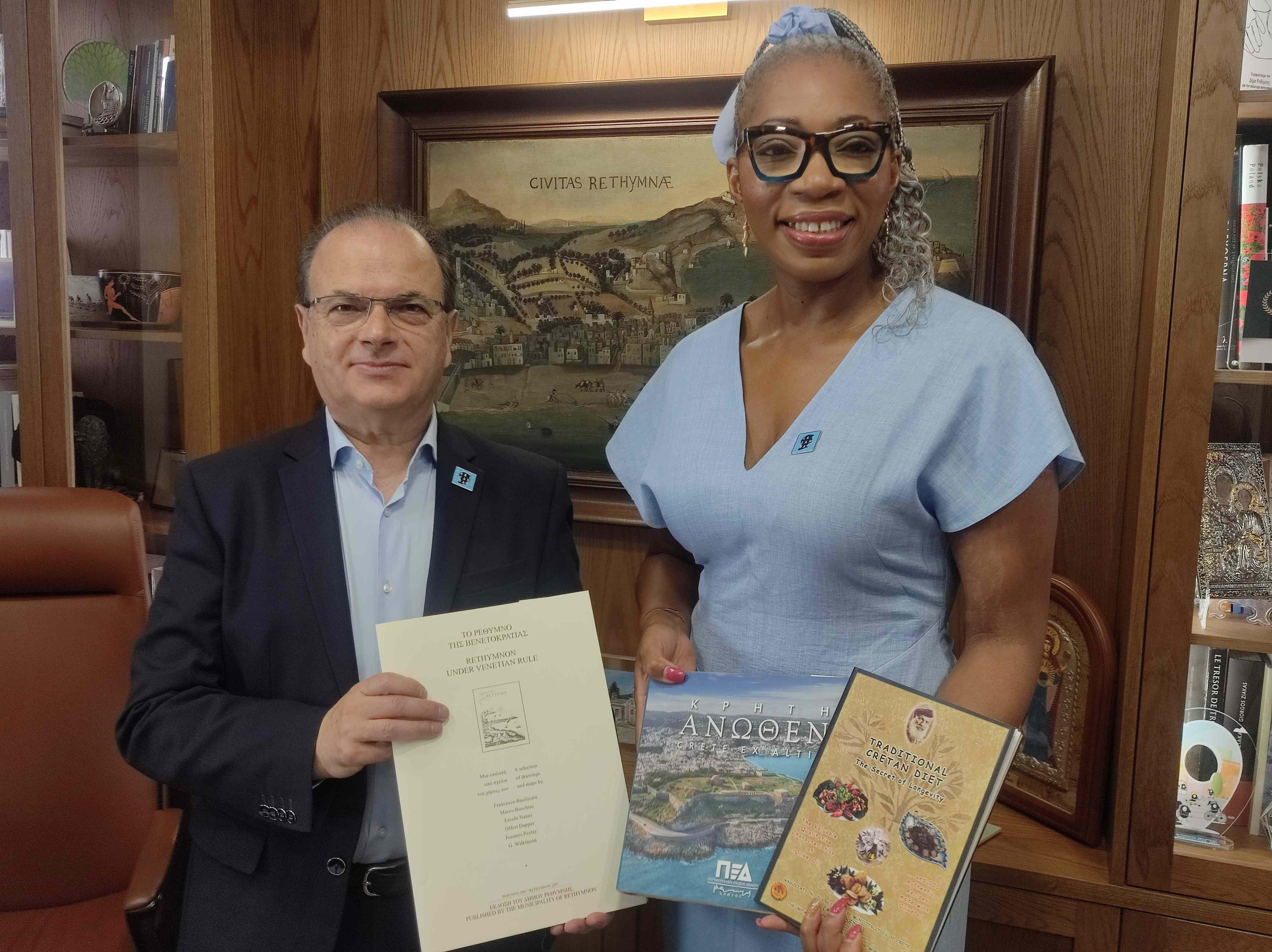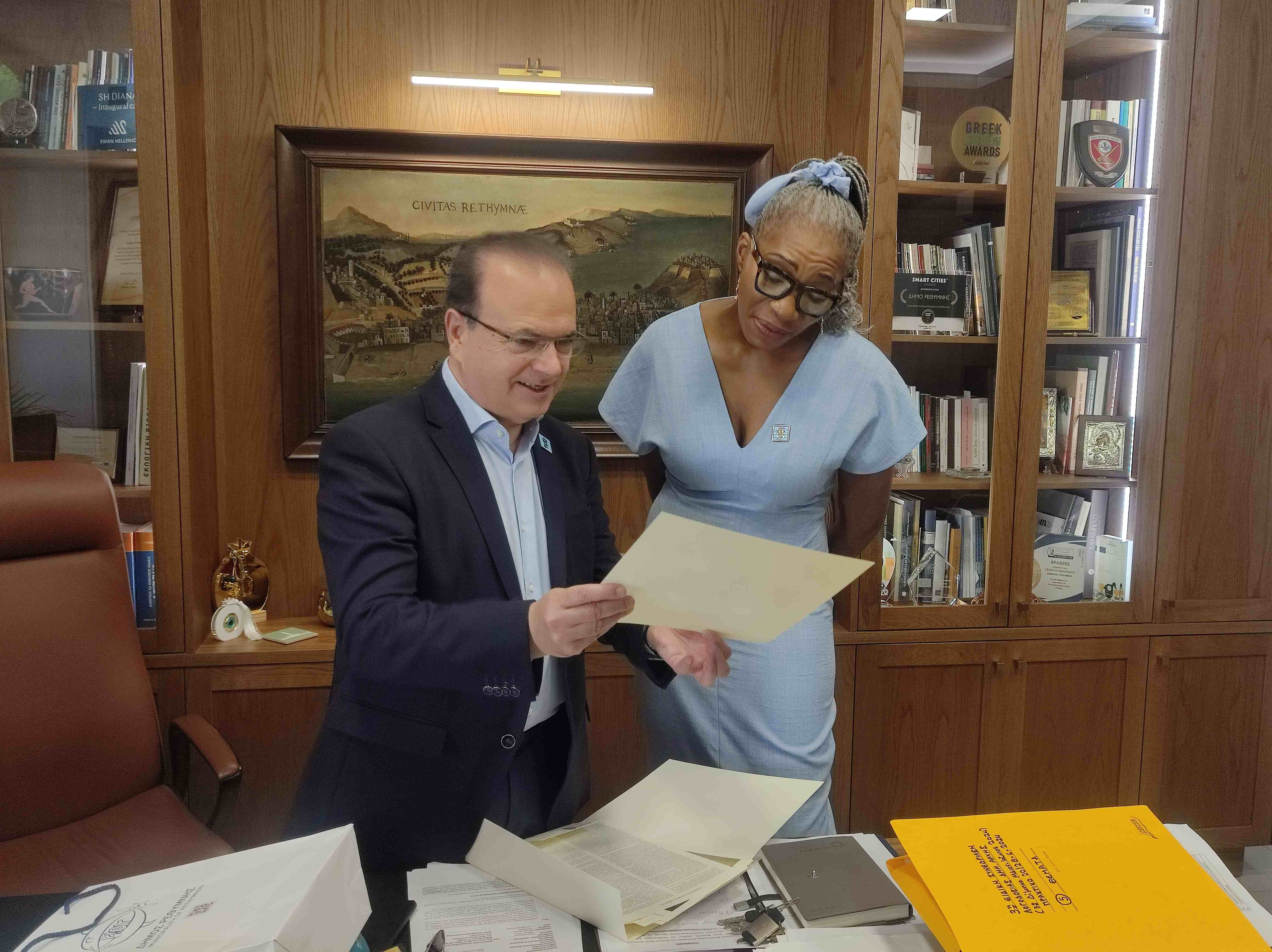 Ο Δήμαρχος Ρεθύμνης κ. Γιώργης Χ. Μαρινάκης είχε την τιμή και την χαρά να υποδεχθεί σήμερα στο γραφείο του την Διευθύνουσα Σύμβουλο του Βασιλικού Κοινωνικού Ιδρύματος «The Diana Award» Dr Tessy Ojo SBE.
