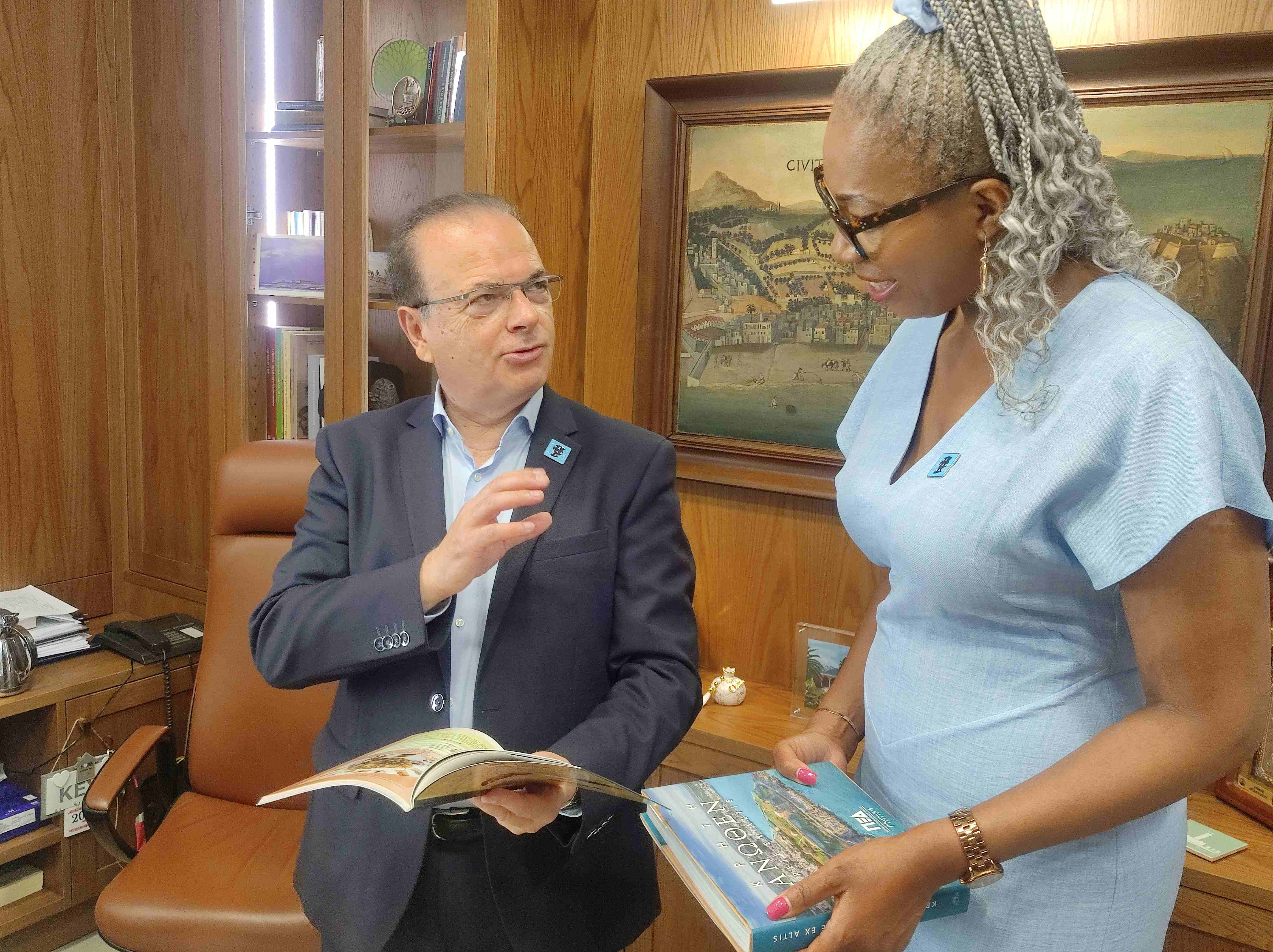 Ο κ. Δήμαρχος συνεχάρη την Dr Tessy Ojo SBE για την δράση της και της χάρισε αναμνηστικά δώρα από την πόλη μας, καλωσορίζοντας την και ευχαριστώντας την για εν γένει ανθρωπιστική προσφορά της.