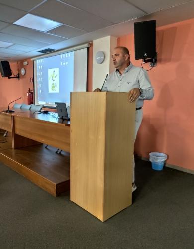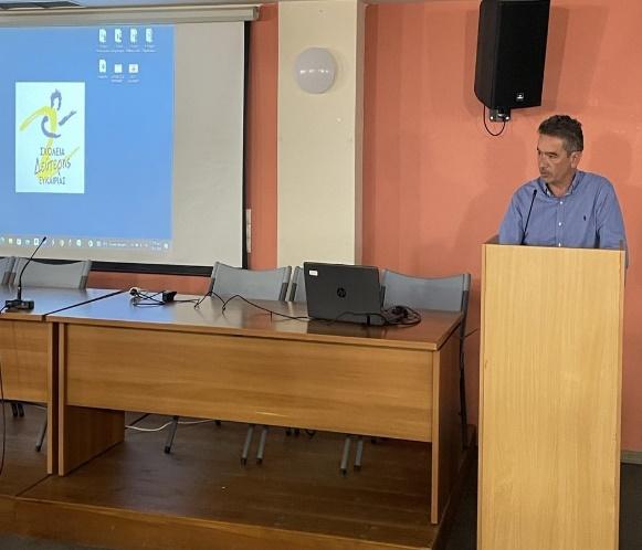 Το κύριο μέρος της εκδήλωσης ξεκίνησε με την παρουσίαση του Σ.Δ.Ε Ρεθύμνου και των δράσεων του σχολικού έτους 2023-2024, από το Διευθυντή του Σ.Δ.Ε.