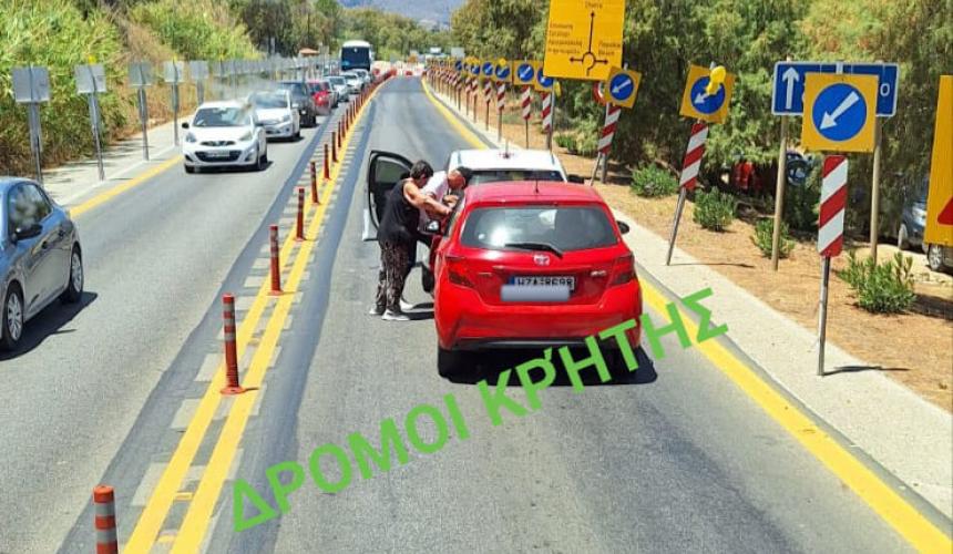 Όπως δείχνει η φωτογραφία από την σελίδα "Οι δρόμοι της Κρήτης (ΒΟΑΚ)" στα μέσα κοινωνικής δικτύωσης δημιουργήθηκε κυκλοφοριακός φόρτος για αρκετή ώρα.