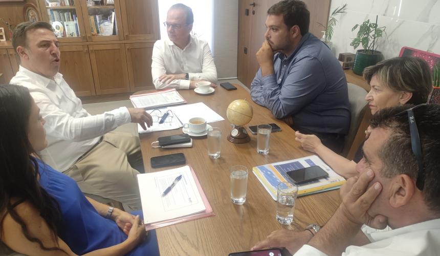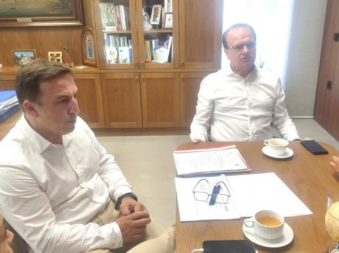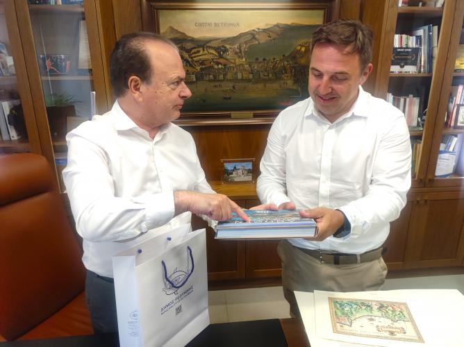 Ζητήματα διαχείρισης υδάτων, υγρών αποβλήτων και λειτουργίας των ΔΕΥΑ συζητήθηκαν σήμερα σε σύσκεψη που έλαβε χώρα υπό τον Δήμαρχο Ρεθύμνης κ. Γιώργη Χ. Μαρινάκη, ο οποίος δέχθηκε στο γραφείο του τον Αντιπρόεδρο της Ρυθμιστικής Αρχής Αποβλήτων Ενέργειας και Υδάτων, Προεδρεύοντα του κλάδου Υδάτων, Δρ. Δημήτριο Ψυχογυιό, Αν. Καθηγητή του Πανεπιστημίου Πειραιώς.
