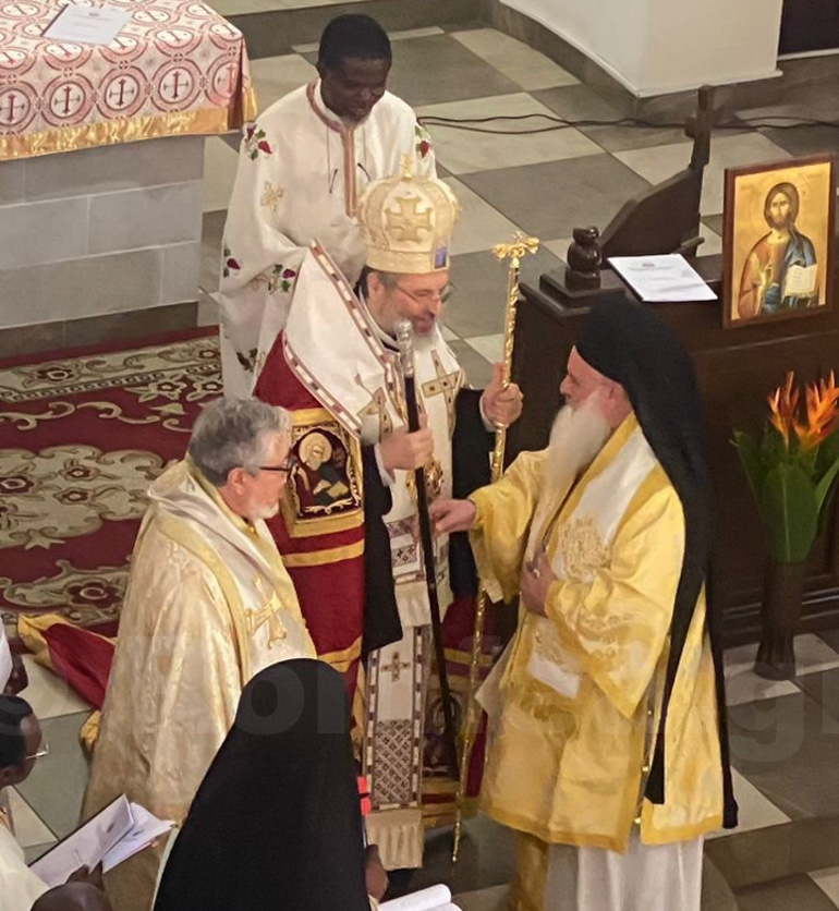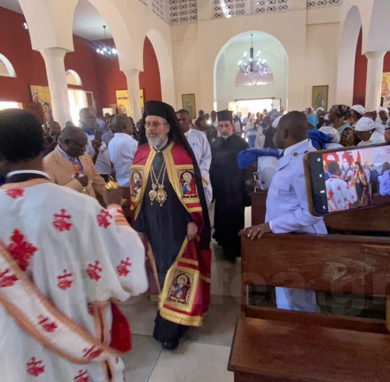 Απευθυνόμενος στο εκκλησίασμα ο Σεβασμιώτατος τόνισε τον θαυμασμό του για τα έργα του Πατριαρχείου στην χώρα και ευχαρίστησε όλους όσους συνέβαλαν στην επίτευξη τους, μηδ’ ενός εξαιρουμένου και τόνισε ότι οι Έλληνες ήταν και θα είναι Πρωτοπόροι Ιεραπόστολοι όχι μόνο γιατί μεγάλωσαν με τις Χριστιανικές Αξίες και το Ευαγγέλιο του Χριστού αλλά και γιατί έχουν χρέος και καθήκον να είναι Ιεραπόστολοι αφού στην Ελλάδα πάτησαν οι άγιοι πόδες των Αποστόλων του Χριστού και στην Ελληνική γλώσσα γράφτηκε το Ευαγγέλιο.