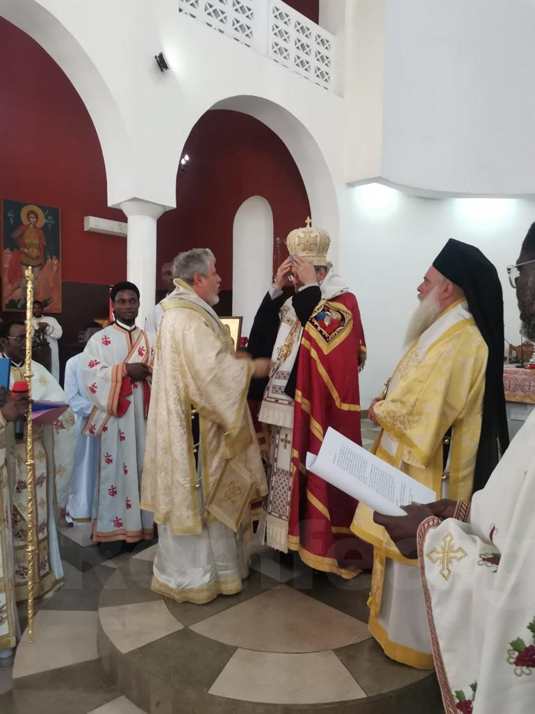 Η τελετή της ενθρονίσεως έγινε κατά το τυπικό της Αλεξανδρινής Εκκλησίας και έλαβε χώρα μετά την Θεία Λειτουργία, στην οποία προεξήρχε ο εκπρόσωπος της Α.Θ.Μ. του Πάπα και Πατριάρχου Αλεξανδρείας και πάσης Αφρικής κ.κ. Θεοδώρου Β΄, Σεβ. Μητροπολίτης Γουινέας κ. Γεώργιος και συλλειτούργησαν ο όμορος Μητροπολίτης Σεβ. Κινσάσας κ. Θεοδόσιος, ο Σεβ. Θεόδωρος, ο Πρωτοσύγκελλος της Ι.Μ. Κινσάσας Αρχιμ. Γεράσιμος, και οι κληρικοί της Μητροπόλεως Κονγκό-Μπραζαβίλ & Γκαμπόν.