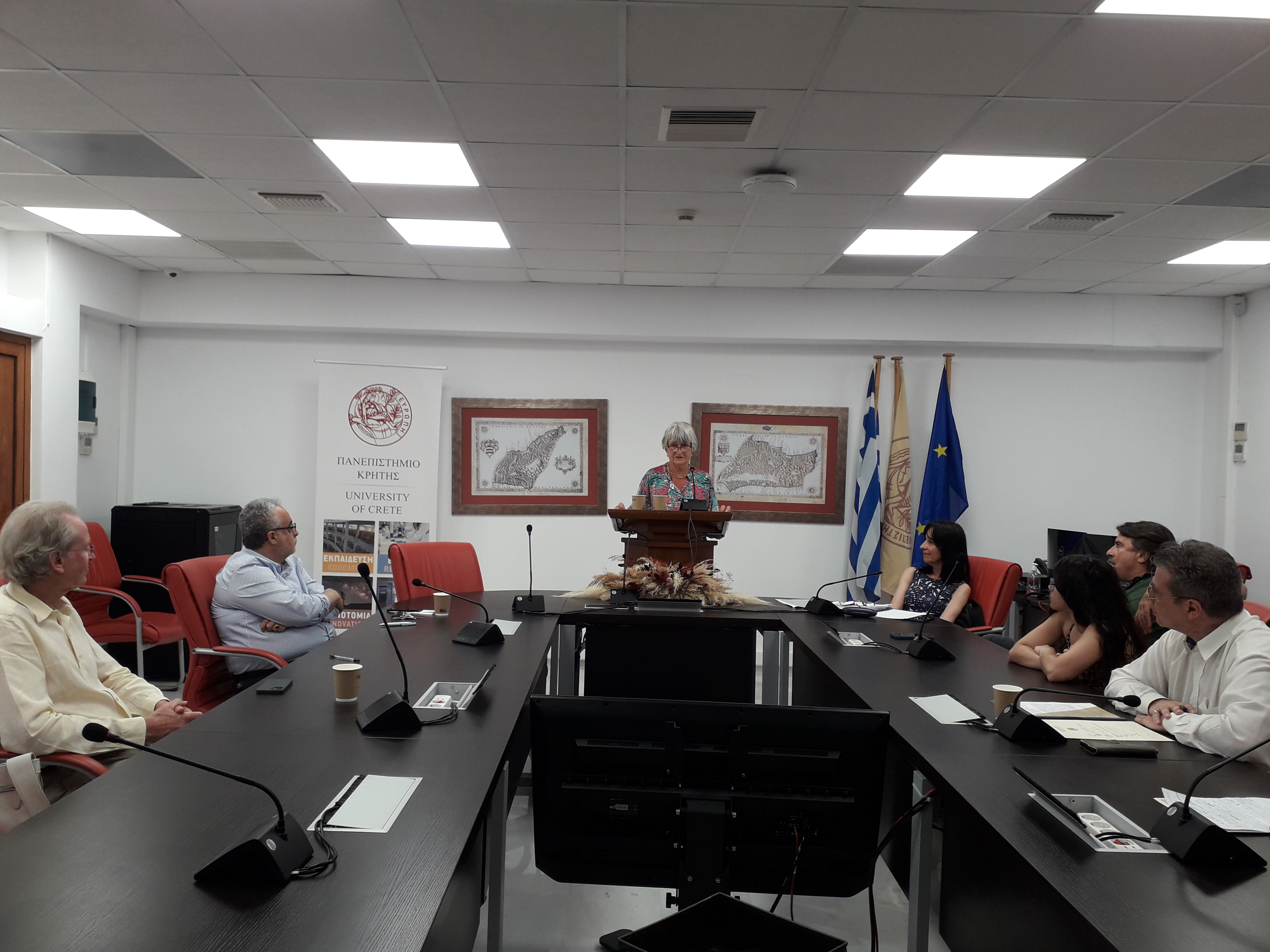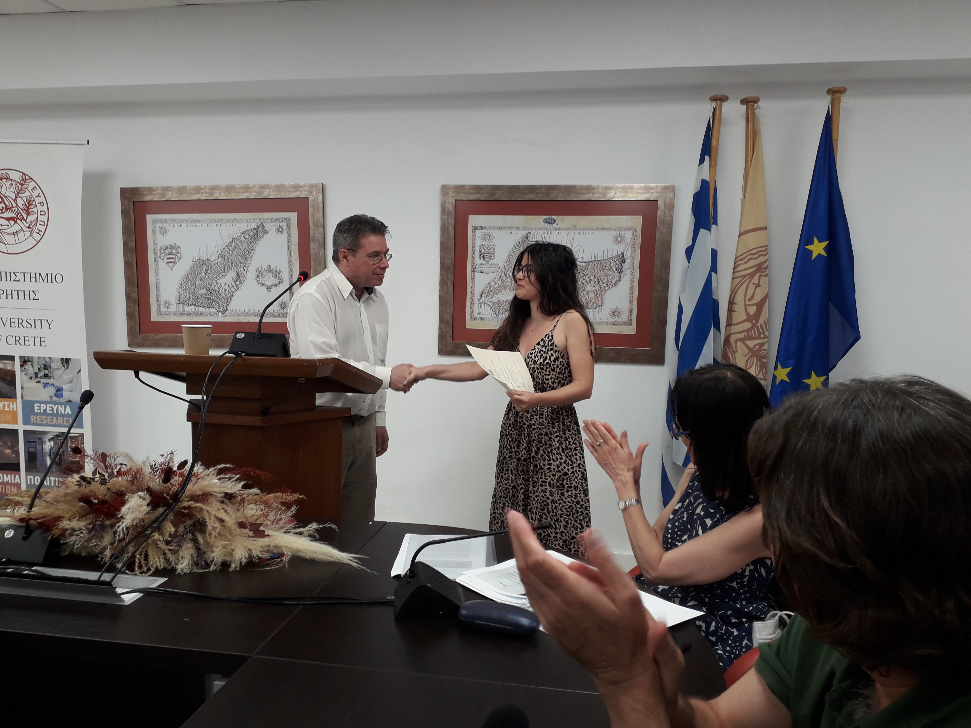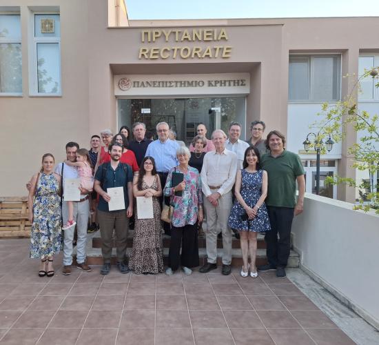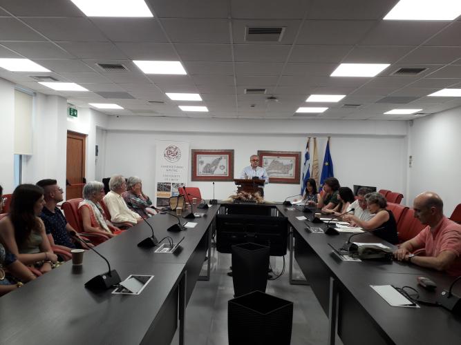 Η τελετή ξεκίνησε με τον χαιρετισμό του Αντιπρύτανη του Πανεπιστημίου Κρήτης Καθηγητή Κωστή Σπανουδάκη, Ακολούθησε προσφώνηση από την Κοσμήτορα της Φιλοσοφικής Σχολής Καθηγήτρια Σταυρούλα Τσινόρεμα, η οποία αναφέρθηκε στον συμβολισμό του Βραβείου, έκανε μια σύντομη ιστορική αναδρομή στη δράση του William Stanley Moss και στον αγώνα κατά των Ναζί κατακτητών κατά την περίοδο του Β’ παγκοσμίου πολέμου, ενώ δεν παρέλειψε να υπογραμμίσει τη σημασία της ευγενικής προσφοράς της χορηγού για τη στήριξη της μεταπτυχιακής και διδακτορικής έρευνας στις ανθρωπιστικές επιστήμες. Στη συνέχεια, έλαβε τον λόγο η κυρία Gabriella Bullock, η οποία αναφέρθηκε στη σημασία της ιστορικής μνήμης και στις προσπάθειες ενίσχυσης του βραβείου στη χώρα της. Ακολούθησε σύντομη προσφώνηση, ανάγνωση και επίδοση του βραβείου, από τον Πρόεδρο του Τμήματος Φιλολογίας Καθηγητή Στέλιο Παναγιωτάκη στην επιτυχούσα μεταπτυχιακή φοιτήτρια του Τμήματος κυρία Αικατερίνη Γιακιμτσούκη – Μαγαράκη, και, κατόπιν, από την Πρόεδρο του Τμήματος Ιστορίας και Αρχαιολογίας Αναπλ. Καθηγήτρια Ελευθερία Ζέη, στον υποψήφιο Διδάκτορα Αντώνιο Διγαλάκη και στον μεταπτυχιακό φοιτητή Μηνά Χουβαρδά, οι οποίοι μοιράστηκαν του βραβείο του Τμήματός τους.