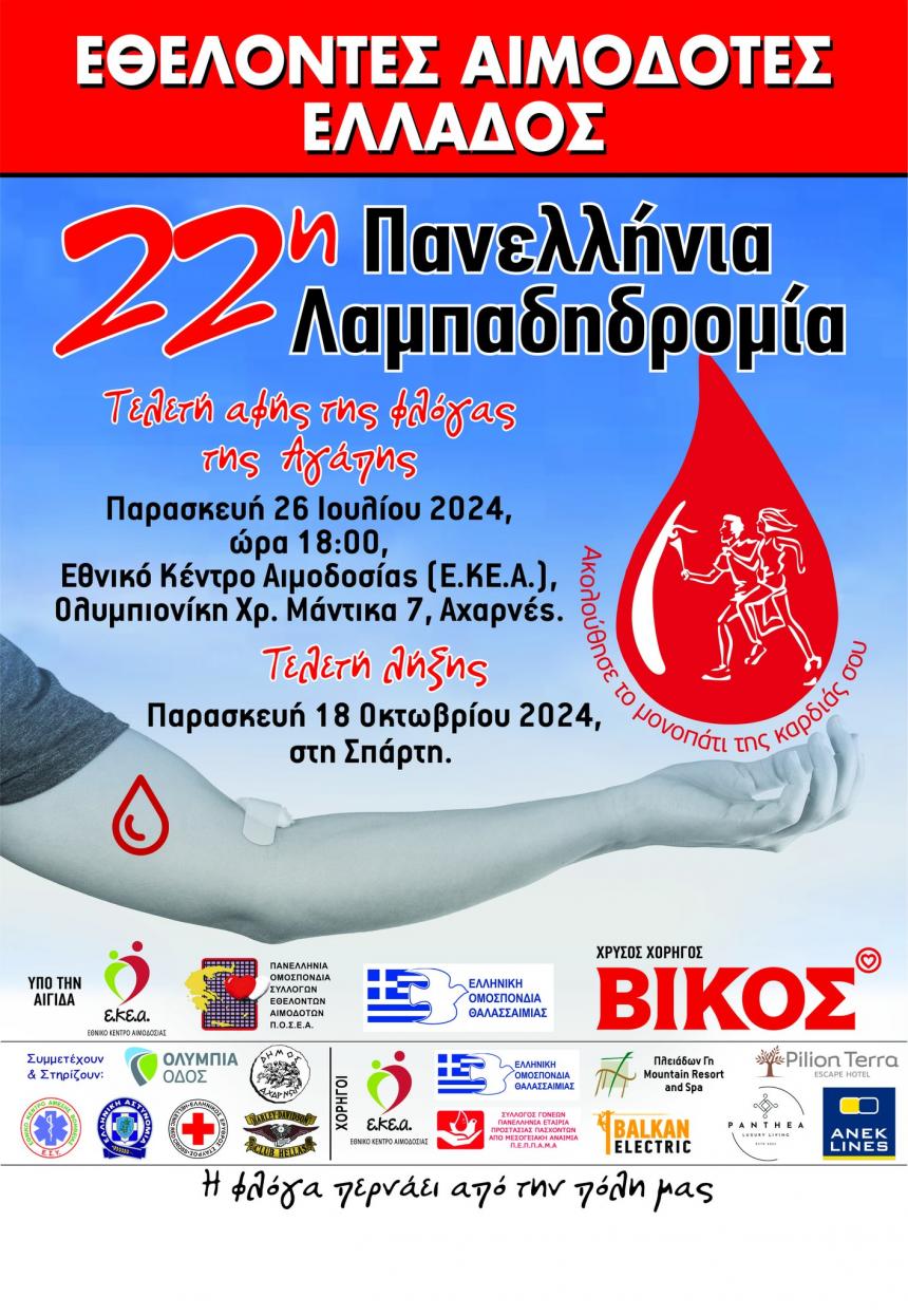 Η παρουσία σας και η συμμετοχή σας στις δράσεις για την 22η Λαμπαδηδρομία Εθελοντών Αιμοδοτών θα μας τιμήσει ιδιαίτερα!