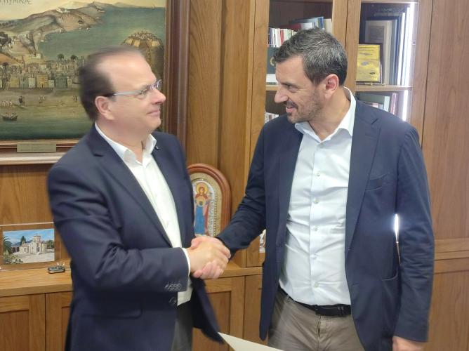 Θεσμική συνάντηση με τον Υφυπουργό Προστασίας του Πολίτη κ. Ανδρέα Νικολακόπουλο είχε σήμερα ο Δήμαρχος Ρεθύμνης κ. Γιώργης Χ. Μαρινάκης, στο Δημαρχείο. Παρευρέθηκε ο Υφυπουργός Εθνικής Άμυνας, Βουλευτής Ρεθύμνου της Ν.Δ. κ. Γιάννης Κεφαλογιάννης.