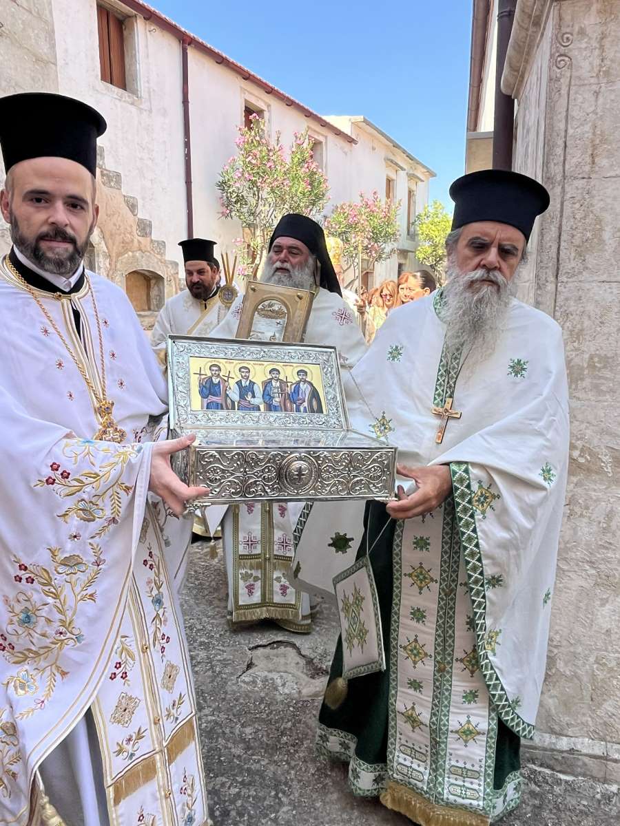 Προ της απολύσεως της Θείας Λειτουργίας, ο Σεβασμιώτατος εξέφρασε τις ευχαριστίες του στον Καθηγούμενο και την Αδελφότητα της Μονής, στον Αστυνομικό Διευθυντή Νομού Ρεθύμνης, Ταξίαρχο κ. Εμμανουήλ Παπαδάκη, στην Επικεφαλής της Μείζονος Αντιπολιτεύσεως του Δήμου Ρεθύμνης κ. Ρένα Κουτσαλεδάκη και σε όλους τους συμμετέχοντες πολυπληθείς προσκυνητές από ολόκληρη την Κρήτη, ευχόμενος να έχομε όλοι αδάπανη την προς Θεόν ικεσία και πρεσβεία του Αγίου Προφήτου Ηλιού του Θεσβίτου.