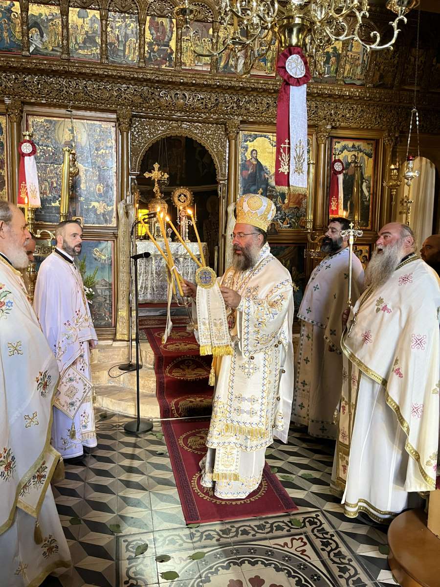 Τέλος, κατόπιν της σχετικής Αποφάσεως της Ιεράς Επαρχιακής Συνόδου της Εκκλησίας Κρήτης, ο Σεβασμιώτατος τέλεσε Επιμνημόσυνη Δέηση για τη συμπλήρωση 50 ετών από την τουρκική εισβολή στη Μεγαλόνησο Κύπρο, την εθνική αυτή τραγωδία που έλαβε χώρα την 20ή Ιουλίου 1974, ευχόμενος σύντομα ο Θεός, διά πρεσβειών του Αγίου ενδόξου Προφήτου Ηλιού του Θεσβίτου, να φέρει την επανένωση και την δικαίωση της Κύπρου και του λαού της.