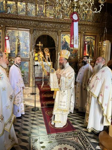 Το πρωί της κυριωνύμου ημέρας, Σαββάτου, 20ής Ιουλίου 2024, ο Σεβασμιώτατος χοροστάτησε κατά τον Όρθρο και τέλεσε την Αρχιερατική Θεία Λειτουργία στην πανηγυρίζουσα Ιερά Πατριαρχική και Σταυροπηγιακή Μονή Προφήτου Ηλιού Ρουστίκων, συμπαραστατούμενος υπό του Καθηγουμένου, Πανοσιολ. Αρχιμανδρίτου Ιωάννου Κουφουδάκη, και άλλων Κληρικών της Ιεράς Μητροπόλεώς μας.