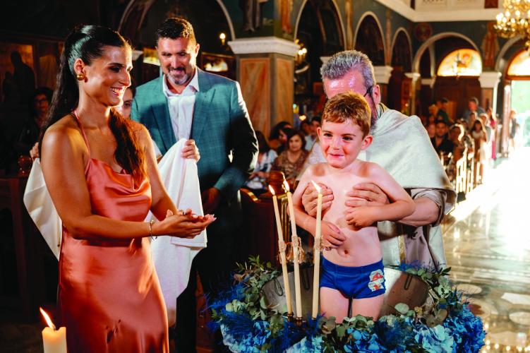 Πήρε το όνομα του παππού του και έδειξε πολύ περήφανος για αυτό! Μπήκε με γέλια στην κολυμβήθρα για να δεχθεί το Άγιο Μύρο από τον πατέρα Σωκράτη Ξενικάκη που τέλεσε το ιερό μυστήριο στον Ναό Αγίων Τεσσάρων Μαρτύρων και βεβαίως το λάδι της βάπτισης του και τον Σταυρό του από την ανάδοχο του, την Ευδοκία Πατρικαλάκη – Καραγιαννάκη.