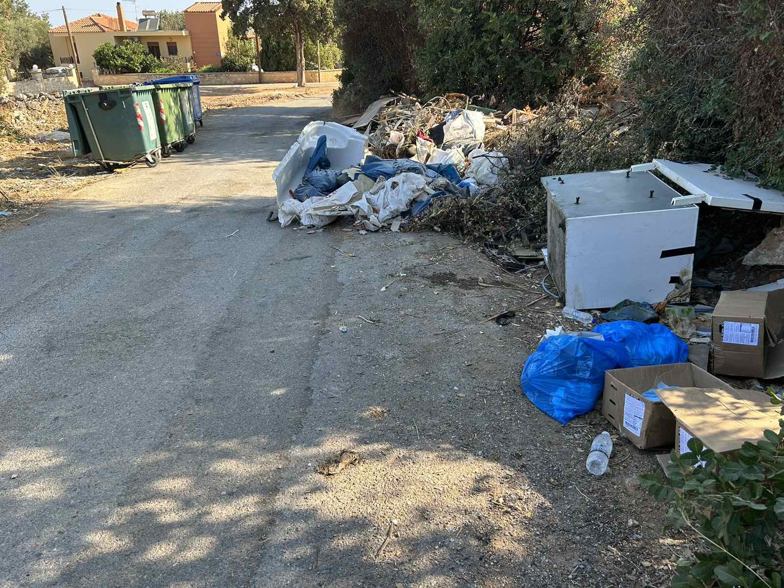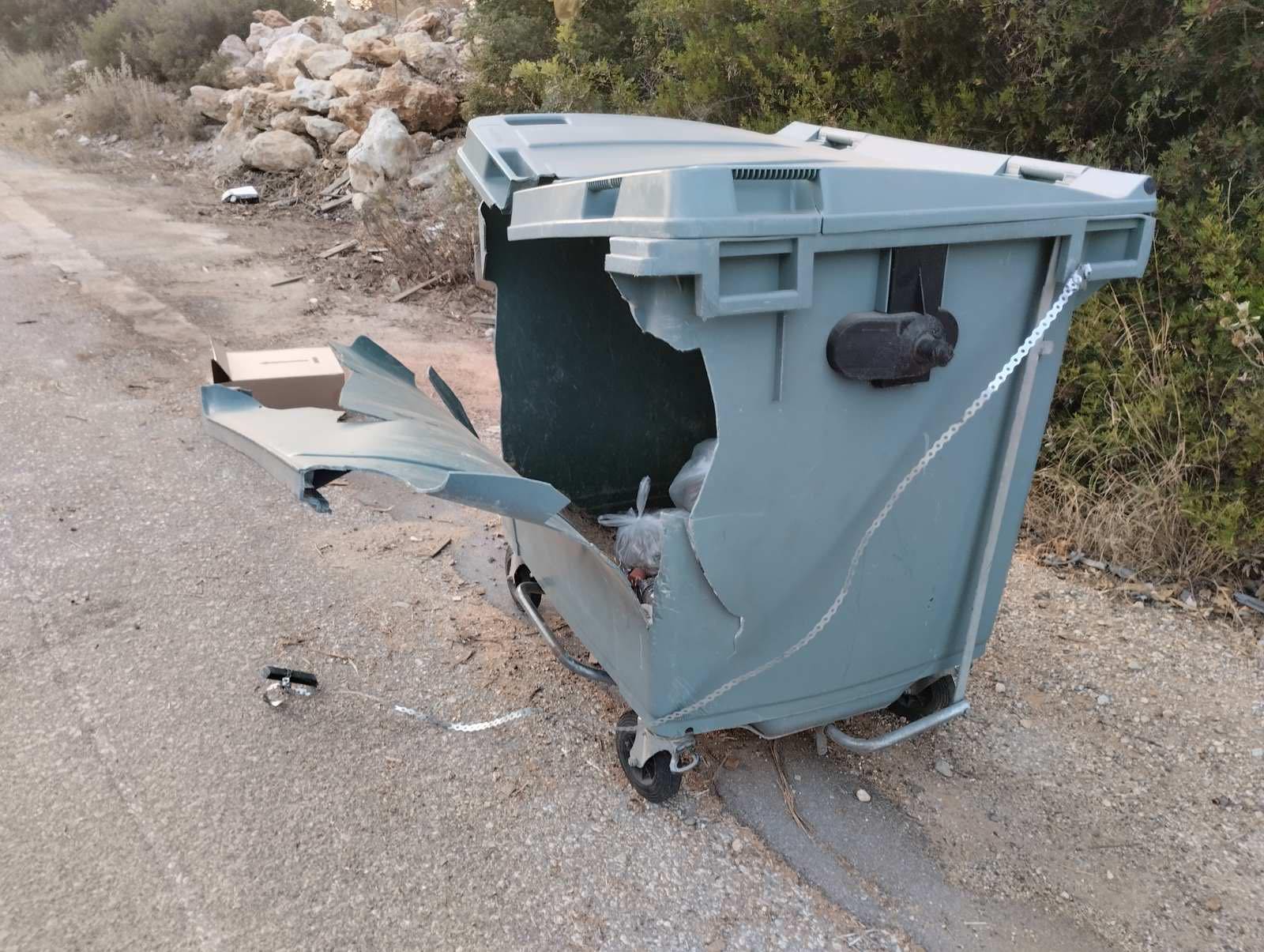 Οι φωτογραφίες με τους γεμάτους κάδους και τα πεταμένα εκτός σκουπίδια, προέρχονται από την περιοχή του Ατσιποπούλου, ενώ ο κάδος που «άνοιξε» κοντεύει να διαλυθεί είναι στην περιοχή του Ρουσσοσπιτίου.
