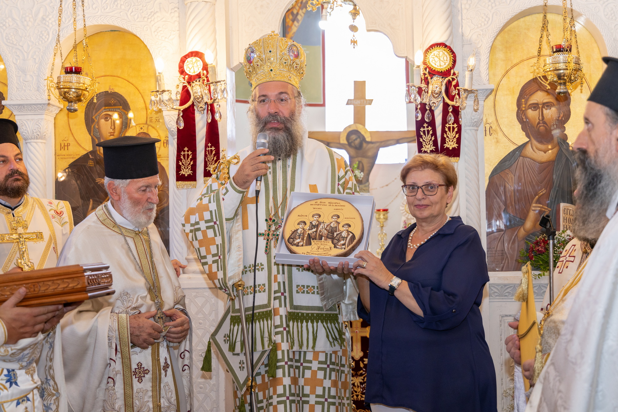 « Ευχαριστούμε τους ορατά συνεργούς μας Αγίους Τέσσερεις Μάρτυρας για τη μεγάλη κληρονομιά : Να είμαστε οι φυσικοί και πνευματικοί απόγονοι τους, να ζούμε στον τόπο που εκείνοι αγίασαν, και επί πλέον, μας έδωσαν την δυνατότητα να βλέπουμε ζωντανή την παρουσία τους, σε πολλές στιγμές της ζωής μας, ως είναι και η σημερινή εορταστική σύναξη, η γεμάτη κατάνυξη και δέος»….