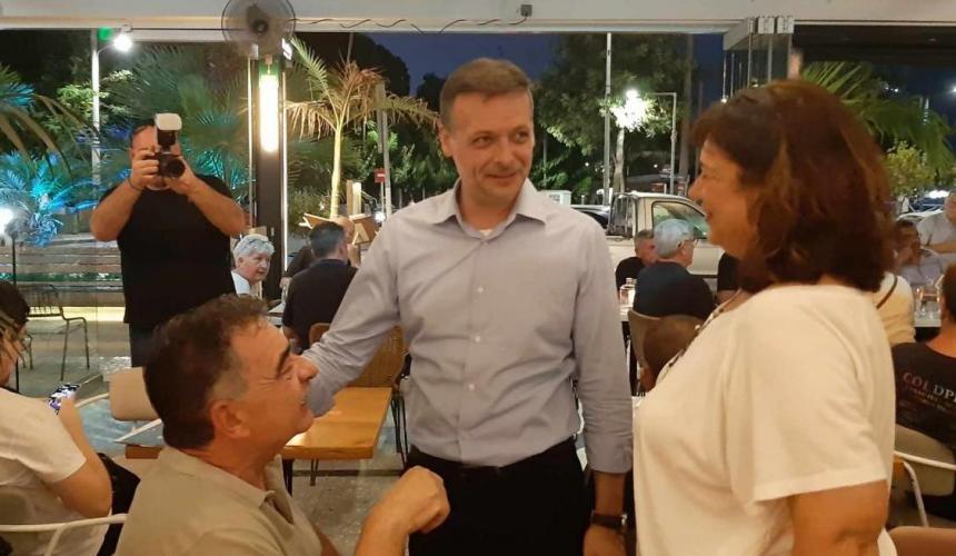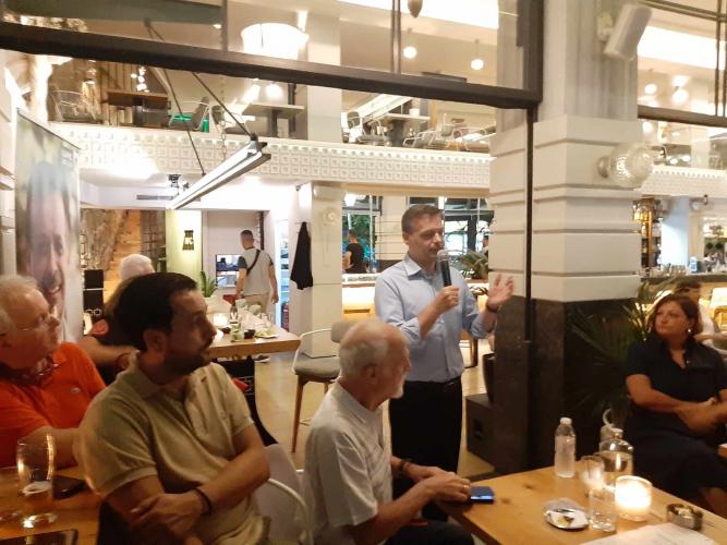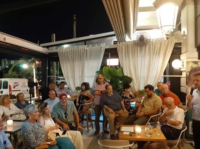 Η συνάντηση με τα στελέχη του κόμματος έγινε στο στο cafe Bankery όπου μίλησε για την υποψηφιότητα του και κάλεσε την Κρήτη να κάνει την μεγάλη ανατροπή, όπως είπε, στις 6 Οκτωβρίου.