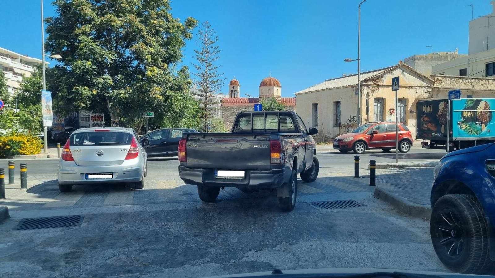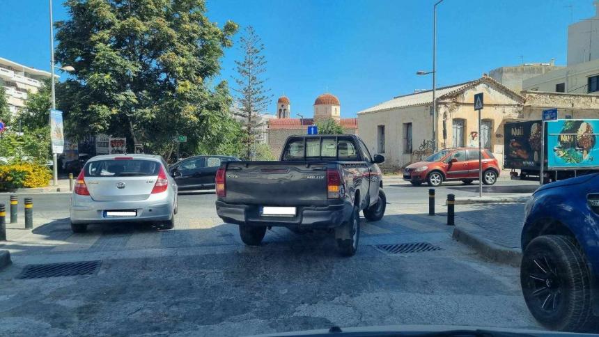 Το επιβατικό βέβαια αριστερά δείχνει λιγότερο προκλητικό, αλλά κι αυτό έχει σταματήσει σε είσοδο parking, εμποδίζοντας την είσοδο και την έξοδο. Για το δε αγροτικό τα λόγια είναι περιττά. Εκεί τον βόλεψε τον οδηγό του εκεί το άφησε και κατέβηκε να κάνει τη δουλειά του.