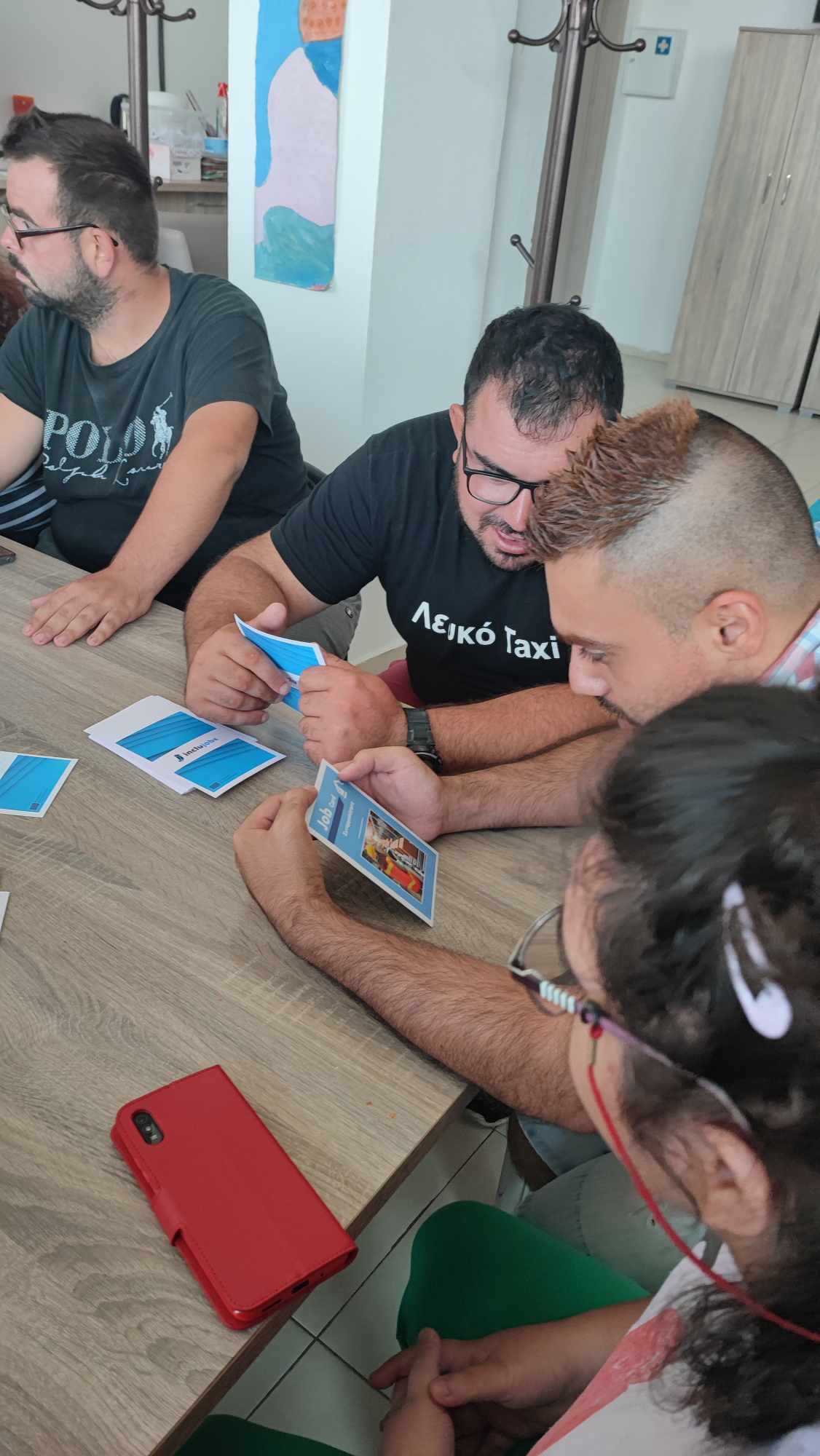Αφού τους εξηγήσαμε τους κανόνες του παιχνιδιού, άρχισαν να παίρνουν τις κάρτες και να ψάχνουν τις δεξιότητες οι οποίες ταιριάζουν με το επάγγελμα που είχαν επιλέξει. Υπήρξε μία σχετική σύγχυση, διότι σε πολλά επαγγέλματα τυχαίνει να χρειάζονται ίδιες δεξιότητες με κάποιο άλλο επάγγελμα, κάτι το οποίο στο αυτισμό ή την νοητική αναπηρία πρέπει να εξηγήσεις κάπως διαφορετικά.