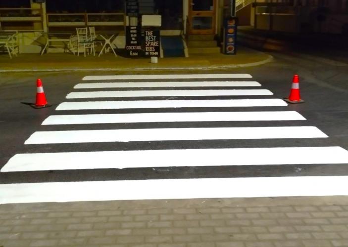 Δυστυχώς, σε ορισμένα σημεία, προκλήθηκε σημαντική ζημιά στα υλικά χρωματισμού των φρεσκοβαμμένων διαβάσεων από εργαζόμενους σε παρακείμενες επιχειρήσεις/ξενοδοχεία, οι οποίοι προέβησαν νωρίς το πρωί σε καθαρισμό της εισόδου και του αύλειου χώρου της επιχείρησης, με νερό.