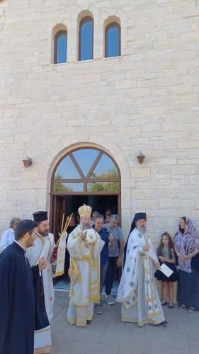 Τον Σεβασμιώτατο με βαθειά συγκίνηση προσεφώνησε ο Καθηγούμενος και κτήτορας της Ιεράς Μονής, Πανοσιολ. Αρχιμανδρίτης Βασίλειος Παπαδάκης, δοξάζοντας τον Θεό για την ιστορική αυτή ημέρα, μετά από 15 ολόκληρα χρόνια, και εκφράζοντας ευχαριστίες προς όλους, όσοι με κάθε τρόπο συνέβαλαν στο έργο τούτο.