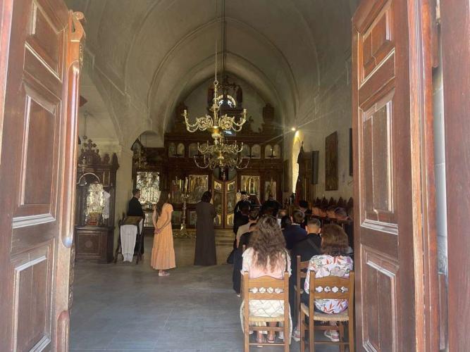 Συγκεκριμένα, ο Όμιλος των Φοιτητών επισκέφθηκαν αρχικά την Ιερά Πατριαρχική και Σταυροπηγιακή Μονή Αρκαδίου, όπου ξεναγήθηκαν από τον Ηγουμενοσύμβουλο της Μονής, Πανοσιολ. Αρχιμανδρίτη Θεολόγο Παπαλεβυζάκη.