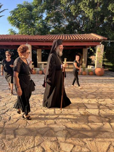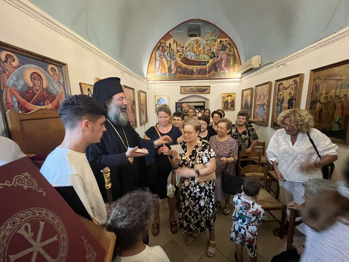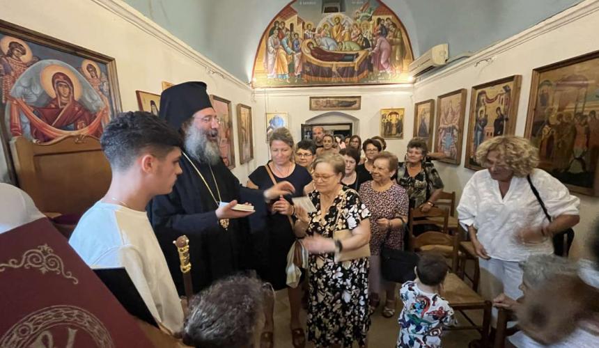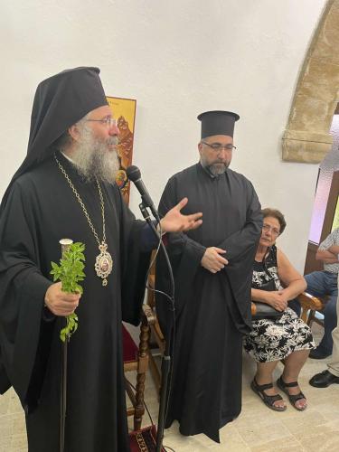 Ο Σεβασμιώτατος, σε όλες τις περιστάσεις, ομίλησε καταλλήλως προς το εκκλησίασμα, ευχόμενος καλό Άγιο Δεκαπενταύγουστο και με το καλό να συνεορτάσομε όλοι μαζί, με πνευματική ευφροσύνη και χαρά, το «Πάσχα του καλοκαιριού», την Εορτή της Κοιμήσεως της Υπεραγίας Θεοτόκου.