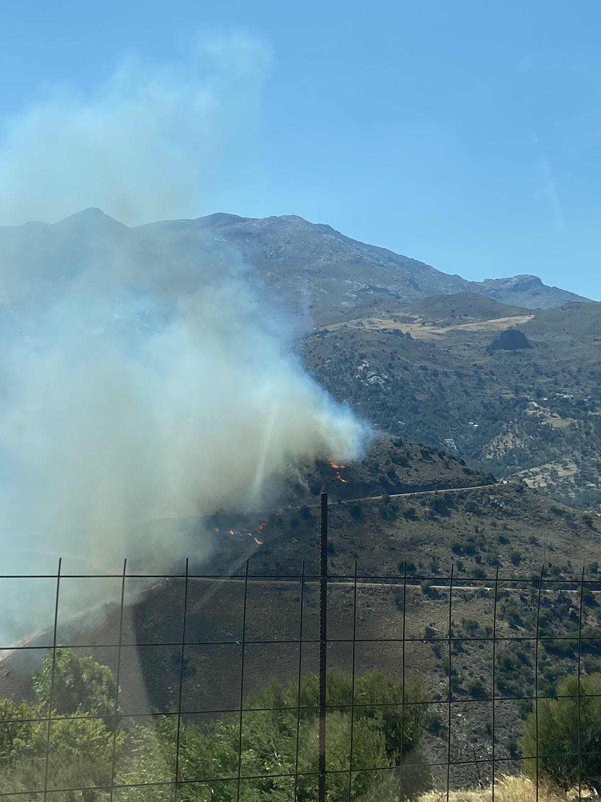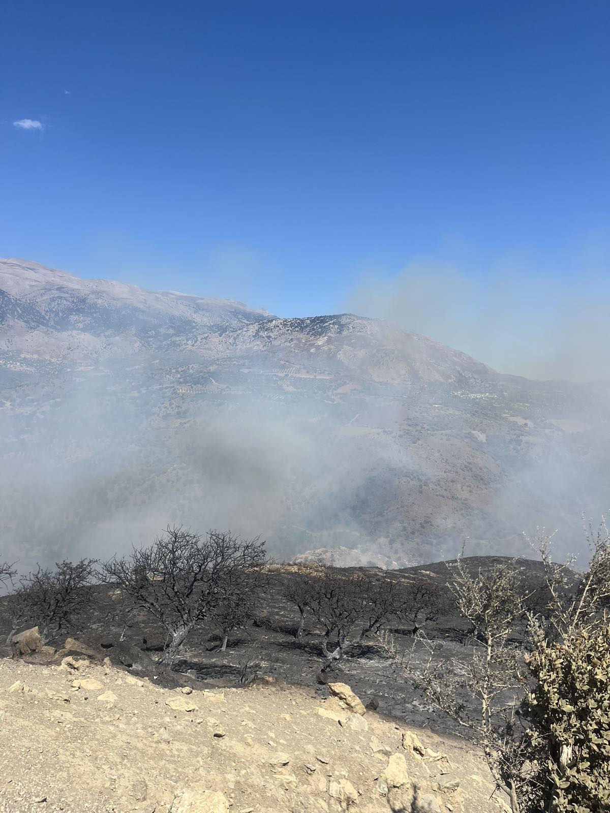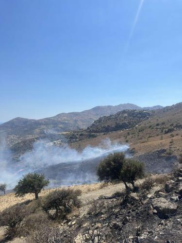 Η πυρκαγιά που κατακαίει χορτολιβαδικές έκτασεις στην περιοχή ευρύτερα των οικισμών Χορδάκι και Άγιος Ιωάννης, κατευθύνεται προς την περιοχής της Ορνέ.
