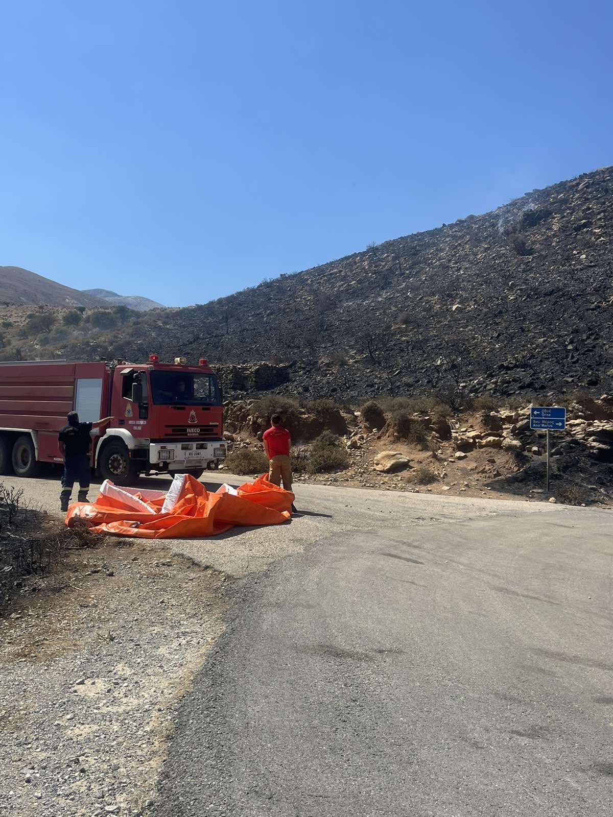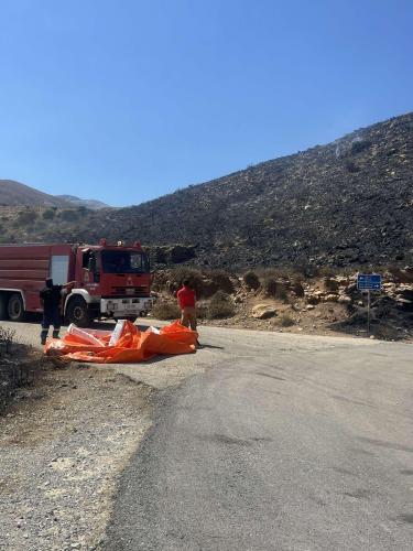 Στο σημείο έχουν σπεύσει ισχυρές πυροσβεστικές δυνάμεις. 20 οχήματα με 67 πυροσβέστες, 4 ομάδες πεζοπόρων της 3ης ΕΜΟΔΕ, συνδρομή από υδροφόρες ΟΤΑ και μηχανήματα έργου.