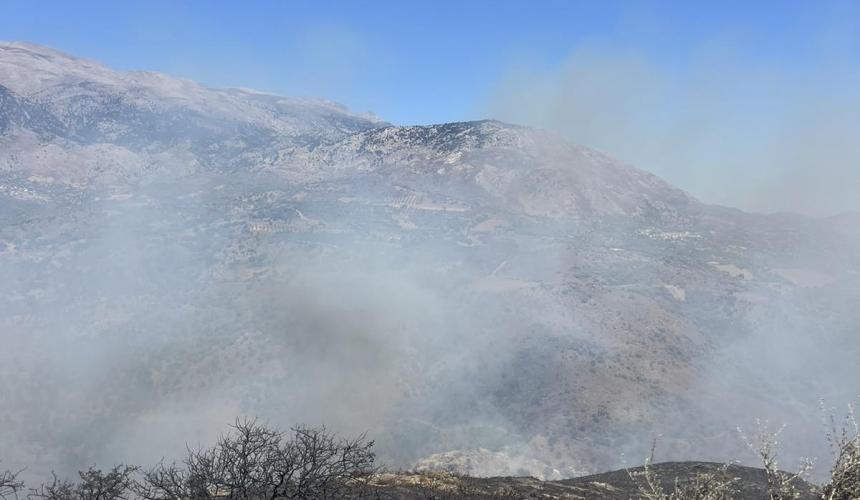 Σύμφωνα με την Πυροσβεστική, η πυρκαγιά καίει σε δύσβατη χαράδρα καθώς επίσης και σε πλαγιά όπου εκεί δρουν με μεγαλύτερη ευκολία οι πυροσβέστες, ενώ ένα από τα βασικά μέτωπα είναι στην περιοχή από το Χορδάκι προς την Ορνέ.