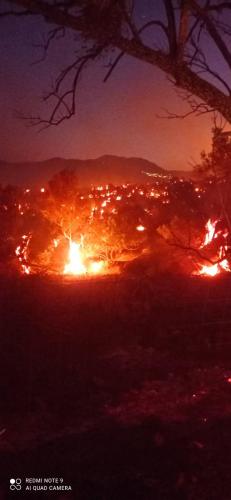 Η περιοχή βρίσκεται σε κατάσταση έκτακτης ανάγκης καθώς απειλείται άμεσα ο οικισμός. Επίγειες δυνάμεις πυροσβεστών και εθελοντών αλλά και εναέρια μέσα, δίνουν μάχη για να σώσουν τα σπίτια, ενώ οι φλόγες έχουν ζώσει τις αυλές των πρώτων σπιτιών