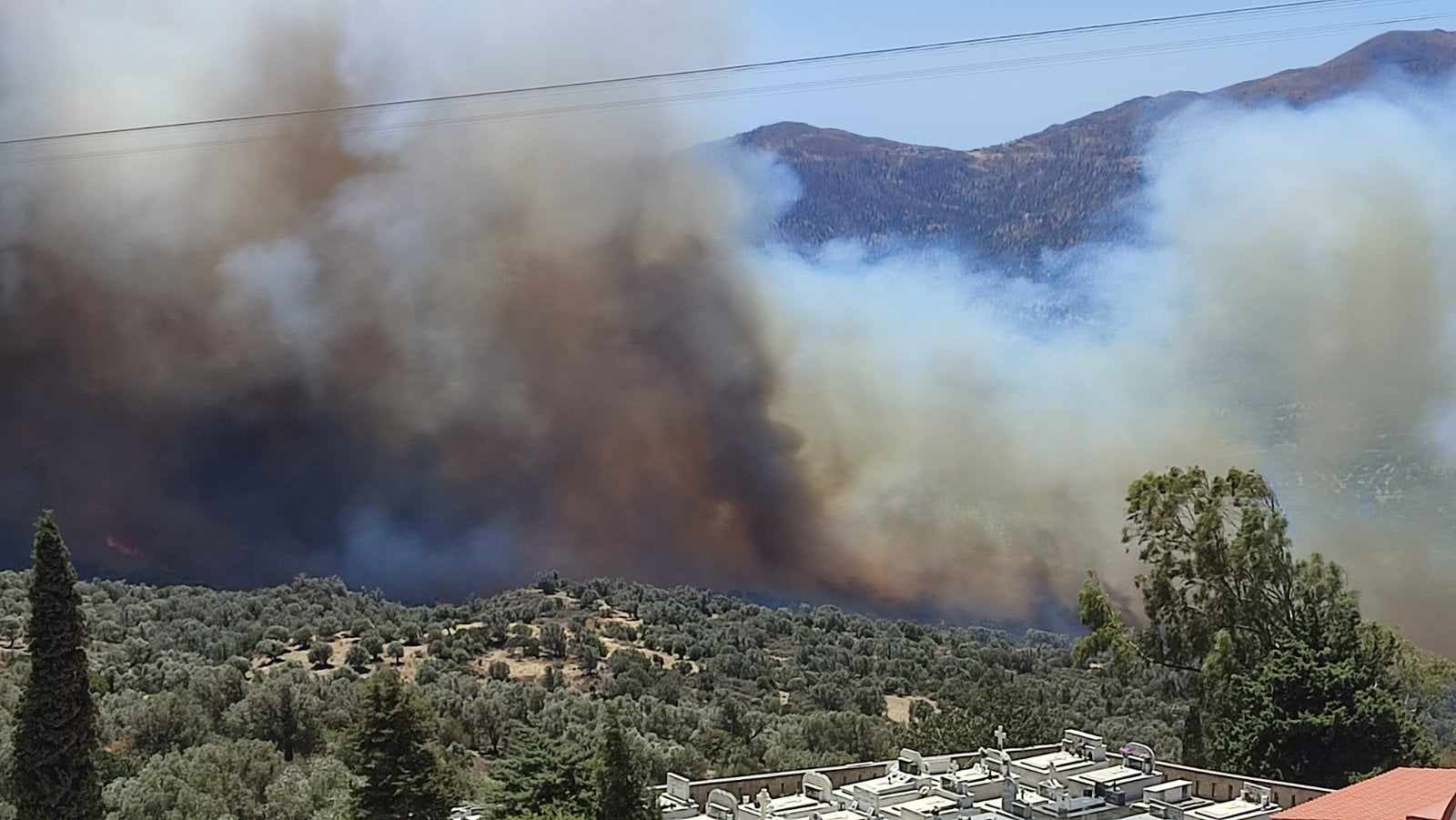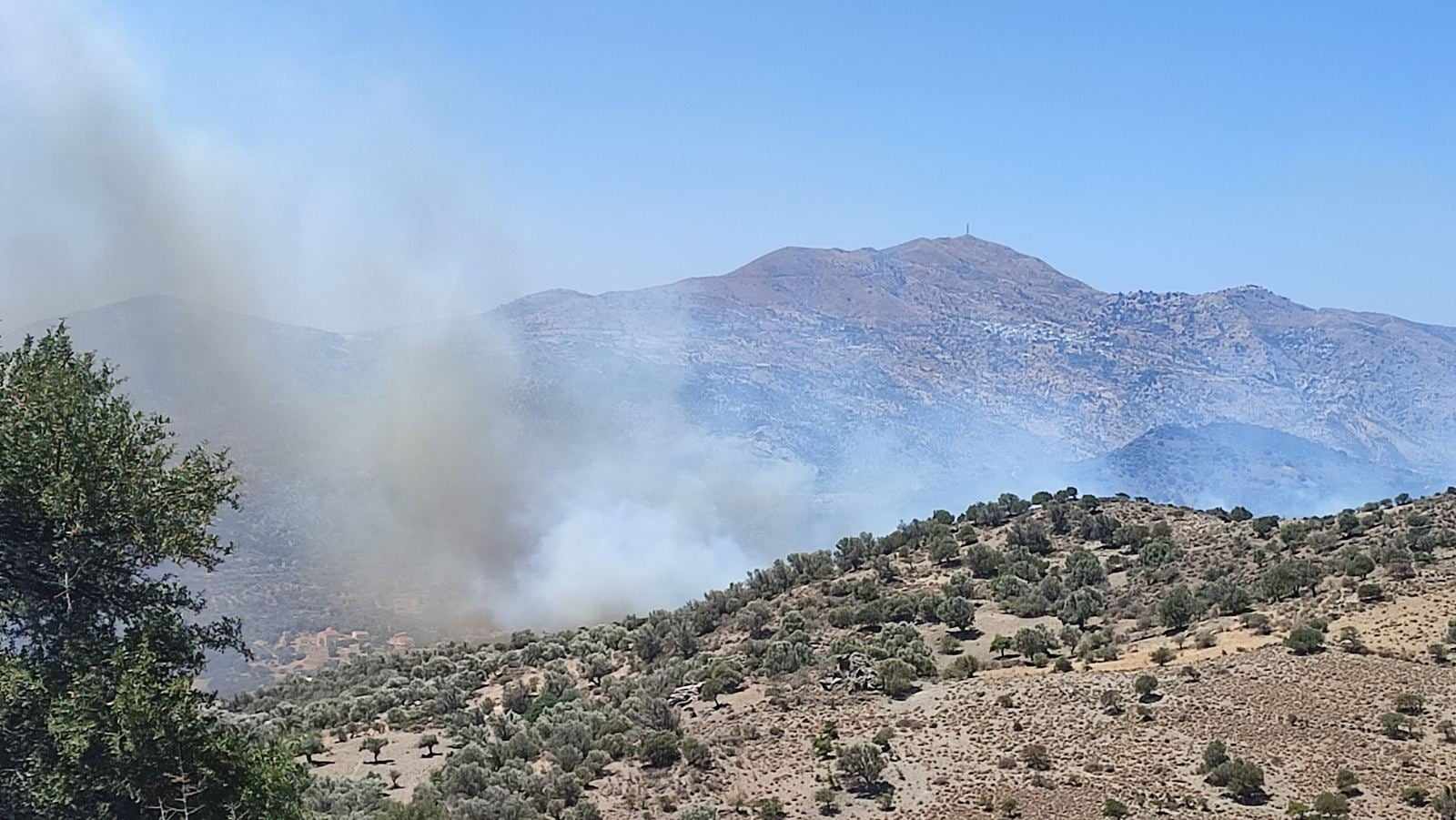 Στην περιοχή πνέουν ισχυροί άνεμοι, που δυσκολεύουν το έργο της πυροσβεστικής, σε ένα δύσκολο μέτωπο, μια και είναι αρκετά δύσβατο.