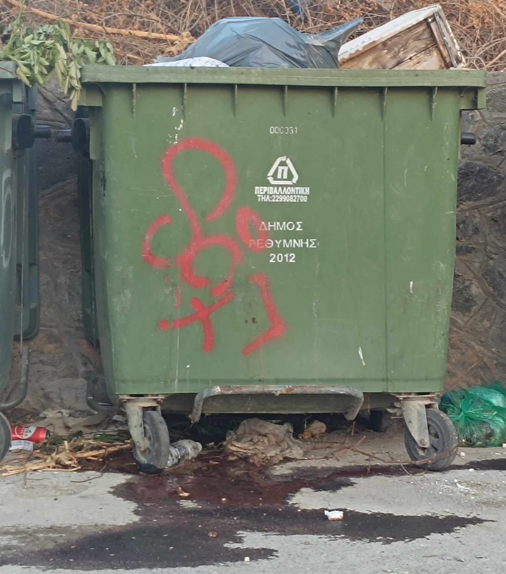 Απογοητευμένος συμπολίτης καταγγέλει στην εφημερίδα μας, ότι κάποιος πέταξε εντόσθια - σφάγια από κάποιο ζώο σε κάδο απρριμάτων με αποτέλεσμα να γίνει εστία μόλυνσης, δυσοσμίας και ρύπανσης της περιοχής μιας και το αίμα έτρεχε στο περιβάλλοντα χώρο. Το γεγονός οτι τα σφαγεία είναι κλειστά σε καμία περίπτωση δεν δικαιολογεί τέτοιου είδους συμπεριφορές και θα πρέπει να υπάρχει τάξη και σωστή συμπεριφορά όσον αφορά την απόρριψη σκουπιδιών άλλωστε η δημόσια υγεία είναι πάνω απ’ όλα. Βέβαια στη φωτογραφία που ισοδυναμεί με 1000 λέξεις εκτός απο το αίμα στο δρόμο, βλέπουμε και κάτι ξύλινα αντικείμενα στον κάδο...