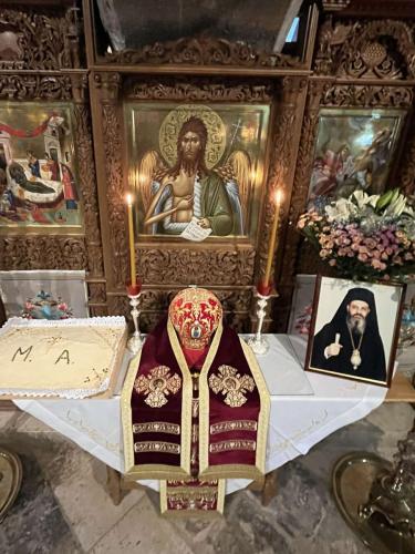 Μετά το πέρας της Θείας Λειτουργίας, στο Αρχονταρίκι της Μονής, προσφέρθηκε επιμνημόσυνο κέρασμα από τον Καθηγούμενο και νέο Πρωτοσύγκελλο της Ιεράς Μητροπόλεως Ρεθύμνης και Αυλοποτάμου, Πανοσιολ. Αρχιμανδρίτη Παρθένιο Καλυβιανάκη, επίσης πνευματικό τέκνο του αοιδίμου Ιεράρχου.
