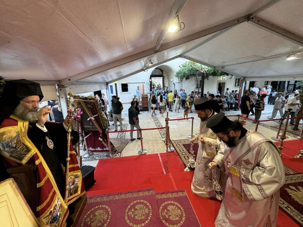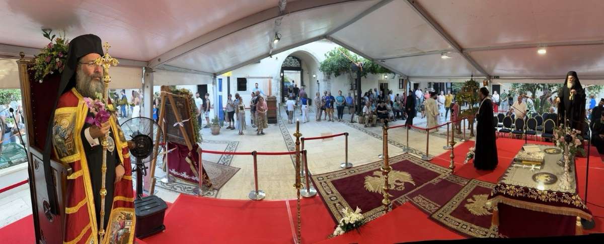 Κατόπιν προτροπής του Σεβασμιωτάτου Ποιμενάρχου κ. Γερασίμου, ο Σεβασμιώτατος Μητροπολίτης Ρεθύμνης και Αυλοποτάμου κ. Πρόδρομος κήρυξε τον Θείο λόγο, αναφερόμενος στο Ιερό Πρόσωπο της Υπεραγίας Θεοτόκου, ενώ ακολούθως έλαβε μέρος στη λιτάνευση της Ιεράς Εικόνος της Παναγίας και στην εόρτιο τράπεζα που παρετέθη μετά το πέρας των Ιερών Ακολουθιών.
