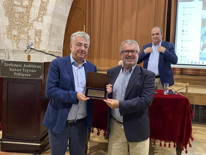 Παράλληλα στη διάρκεια του συνεδρίου που πραγματοποιήθηκε στο ωδείο Ρεθύμνου, παρουσία Αρχών, εκπροσώπων της Αυτοδιοίκησης, συνέδρων- εκπροσώπων μαρτυρικών περιοχών απ' όλη την Ελλάδα, εκπροσώπων της Πανελλήνιας Ένωσης θυμάτων - ολοκαυτωμάτων ο κ. Αρναουτάκης τιμήθηκε "για την συμβολή του στην διατήρηση της ιστορικής μνήμης και στην ανάδειξη της τοπικής παράδοσης» από την διοργανώτρια αρχή του συνεδρίου την Ένωση Συντακτών Ημερησίων εφημερίδων Πελοποννήσου Ηπείρου και Νήσων. Την πλακέτα απένειμε στον Περιφερειάρχη ο Αντιπρόεδρος της Ένωσης Συντακτών Αντώνης Παπουτσάκης. Τις δημόσιες ευχαριστίες της στον Περιφερειάρχη για την στήριξη της Περιφέρειας εξέφρασε το στέλεχος της οργανωτικής επιτροπής και έχουσα την ιδέα του συνεδρίου, δημοσιογράφος Εύα Λαδιά (τιμήθηκε επίσης από την δημοσιογραφική Ένωση ), ενώ τα συγχαρητήρια τους επίσης στον κ. Αρναουτάκη εξέφρασαν τα παριστάμενα μέλη του προεδρείου, ο Θανάσης Μπαμπανέβας πρόεδρος ΤΕΑΣ της ΕΣΗΕΠΗΝ, και ο Κώστας Βασιλάκης μέλος Δ.Σ της ΠΟΕΣΥ. Ο κ. Αρναουτάκης στον χαιρετισμό του αφού ευχαρίστησε την Δημοσιογραφική Ένωση (ΕΣΗΕΠΗΝ), τα στελέχη της, τους συνδιοργανωτές για την τιμητική βράβευση και επιτυχία του συνεδρίου, τόνισε πως η σημερινή διοργάνωση, όπως και ανάλογα συνέδρια λειτουργούν ως θεματοφύλακες της ιστορικής μνήμης της Κρήτης.