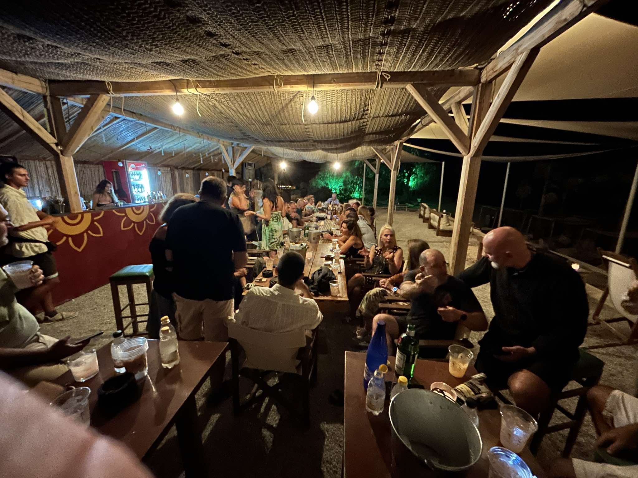 Η συνέχεια στο beach bar «Τζαμάικα» στο Γεράνι θύμιζε κάτι από την πενταήμερη εκδρομή μας στην Ρόδο. Λίγο φαγητό, αλκοόλ όσο άντεχε ο καθένας και τεράστια δόση καλοπέρασης μετά μουσικής, τραγουδιού και χορού έως τις πρώτες πρωινές ώρες!