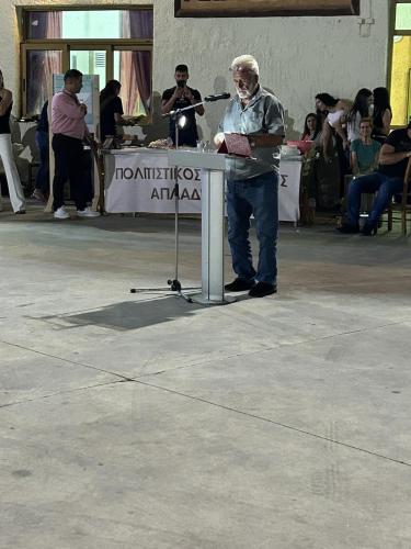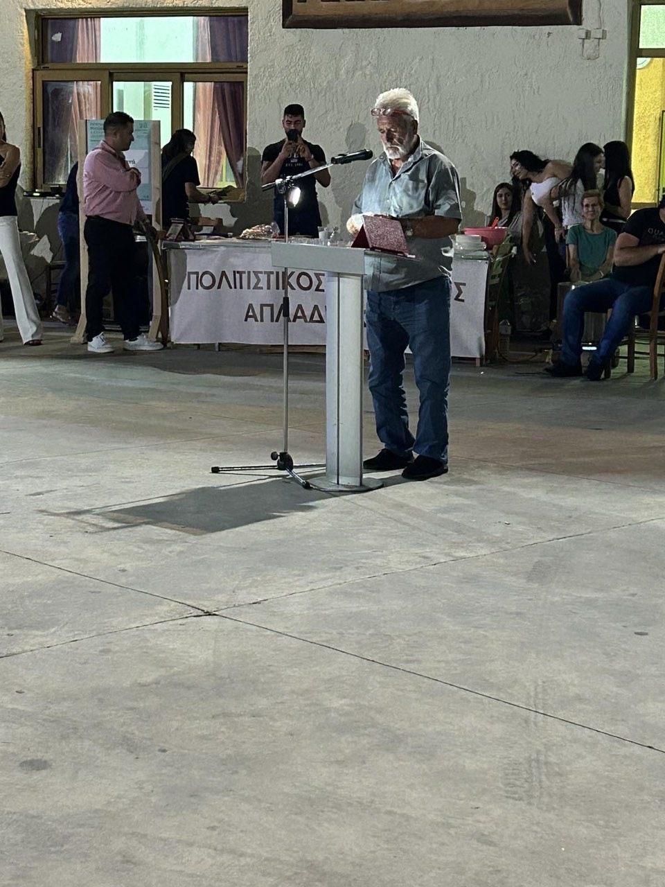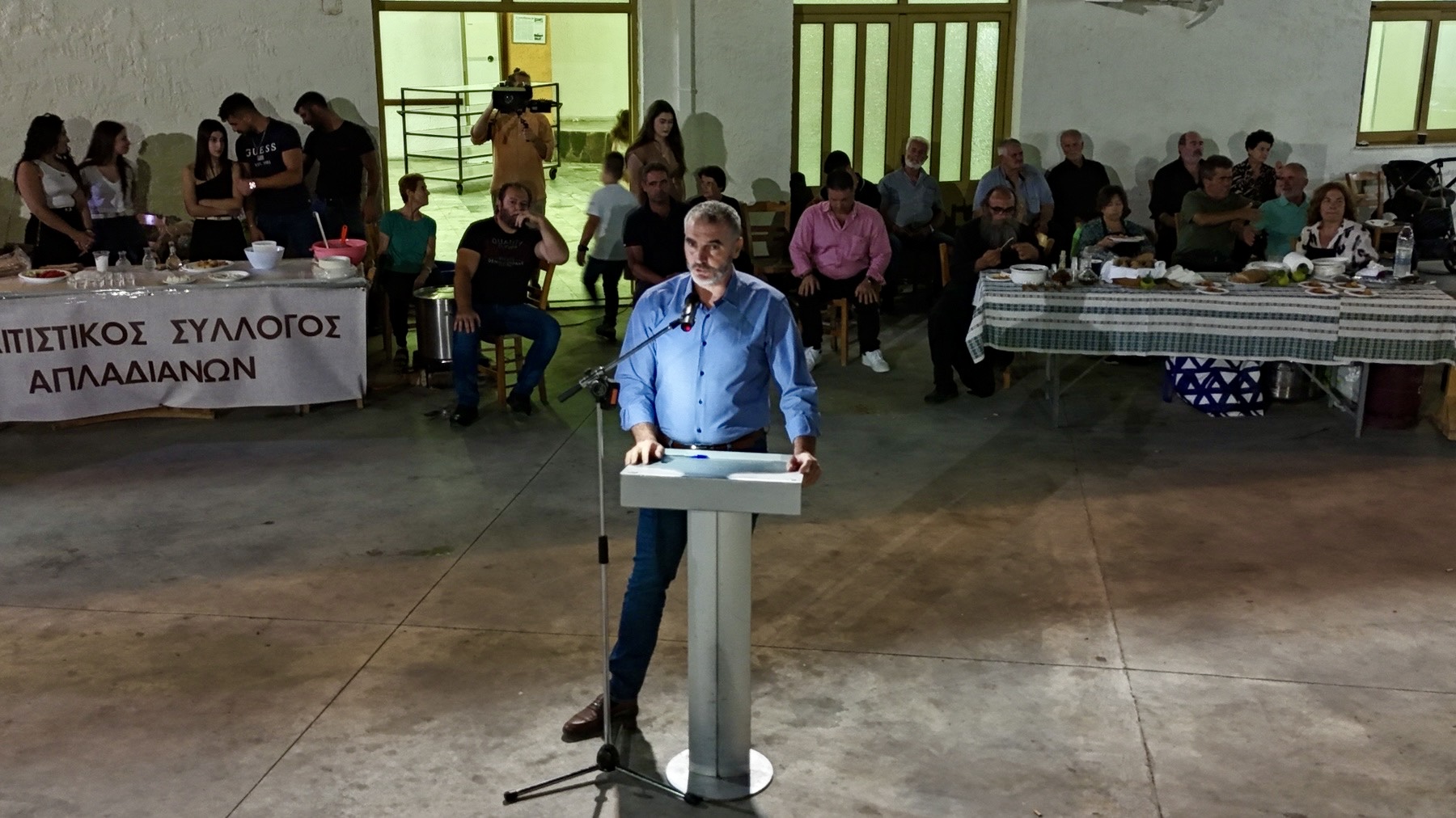 Την εκδήλωση άνοιξε με ένα θερμό καλωσόρισμα ο Δήμαρχος Μυλοποτάμου, κ. Γεώργιος Κλάδος, ο οποίος υπογράμμισε τη σημασία της διατήρησης και προώθησης της τοπικής πολιτιστικής κληρονομιάς του τόπου. Χαιρετισμό απηύθηναν επίσης ο Βουλευτής του ΠΑΣΟΚ κ. Εμμανουήλ Χνάρης, ο Αντιπεριφερειάρχης Επιχειρηματικότητας κ. Βάμβουκας Μιχαήλ, ο Αντιπεριφερειάρχης Αγροτικής Οικονομίας κ. Σταύρος Τζεδάκης, ο Εντεταλμένος Περιφερειακός Σύμβουλος Πολιτικής Προστασίας κ. Σαρρής Μιχαήλ, ο Αντιδήμαρχος κ. Ζαχαρίας Λαδιανος και ο πρόεδρος του πολιτιστικού συλλόγου Απλαδιανών κ. Λυρώνης Εμμανουήλ.