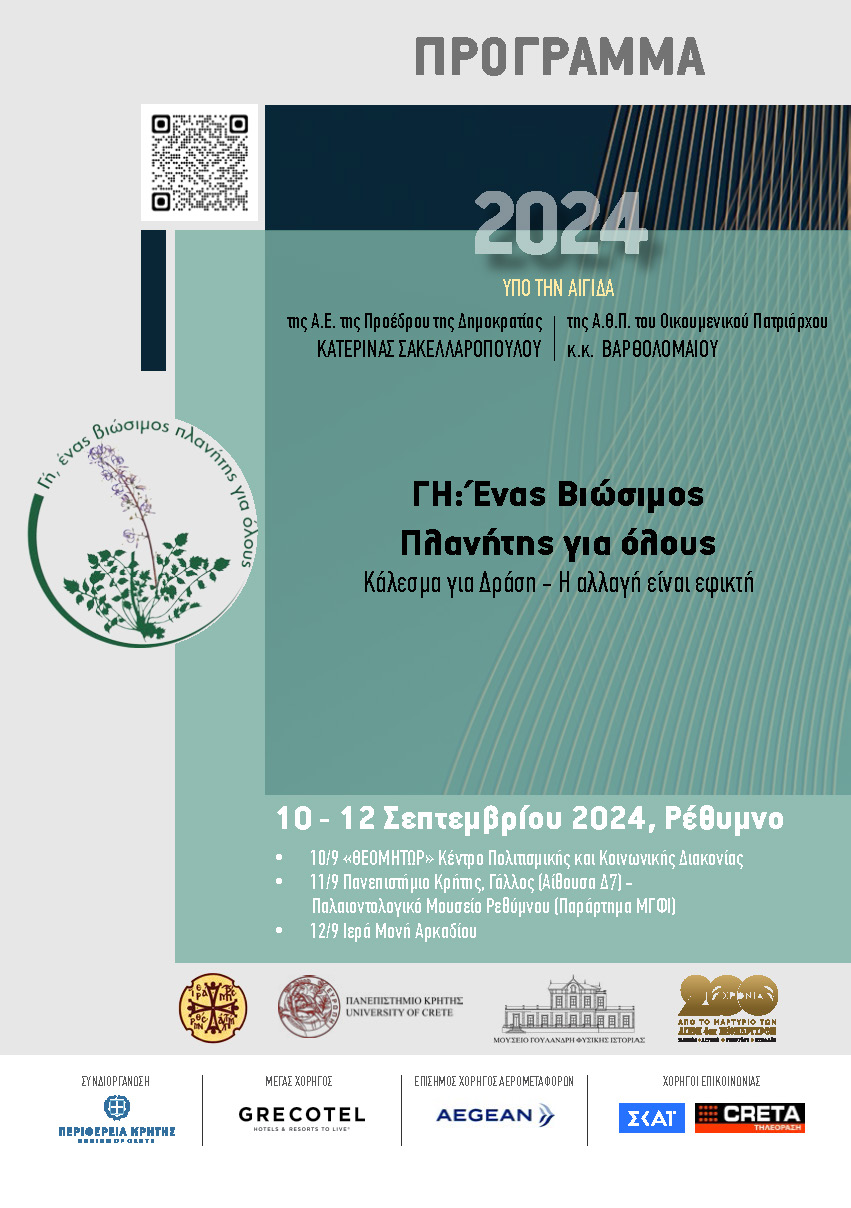 Όλα έτοιμα για το Οικολογικό Συμπόσιο «ΓΗ: Ένας Βιώσιμος Πλανήτης για όλους – Κάλεσμα για Δράση – Η αλλαγή είναι εφικτή», που θα γίνει στο Ρέθυμνο, 10 – 12 Σεπτεμβρίου 2024.