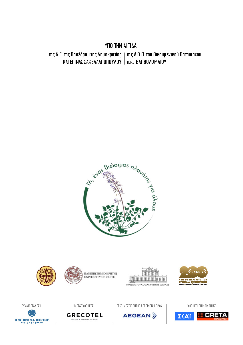 Το Συμπόσιο τελεί υπό την αιγίδα της Α.Ε. της Προέδρου της Δημοκρατίας Κατερίνας Σακελλαροπούλου και της Α.Θ.Π. του Οικουμενικού Πατριάρχου κ.κ. Βαρθολομαίου, και συνδιοργανώνεται από την Ιερά Μητρόπολη Ρεθύμνης και Αυλοποτάμου, το Πανεπιστήμιο Κρήτης, το Μουσείο Γουλανδρή Φυσικής Ιστορίας και την Περιφέρεια Κρήτης, στους χώρους της Ιεράς Μητροπόλεως (ανάμεσά τους και η Μονή Αρκαδίου), του Πανεπιστημίου Κρήτης και του Παλαιοντολογικού Μουσείου Ρεθύμνου (παράρτημα ΜΓΦΙ).