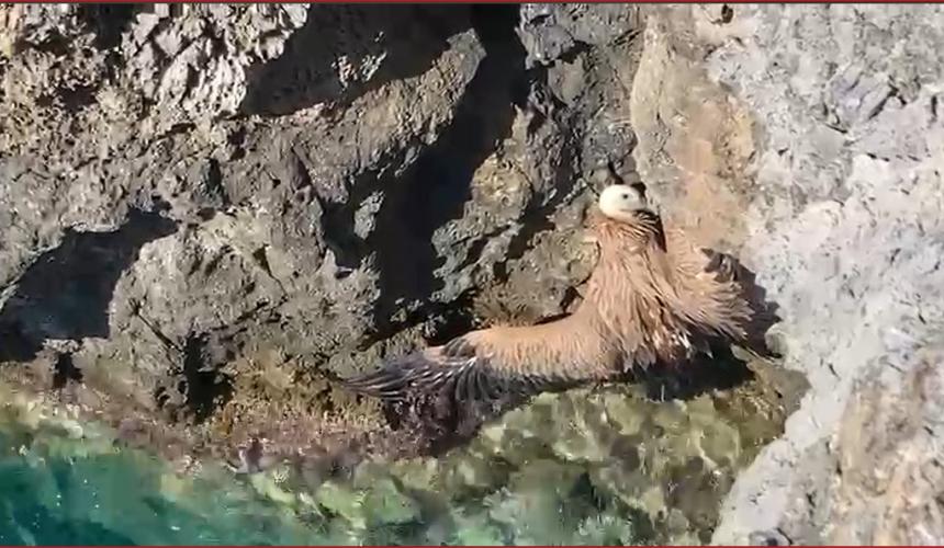 Η παρέμβαση έγινε άμεσα, με καταρρίχηση από τα βράχια, το πτηνό ανασύρθηκε και απόψε θα ταξιδέψει για Πειραιά