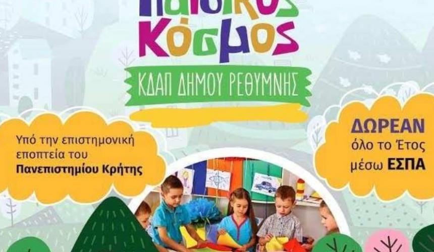Τα Κέντρα Δημιουργικής Απασχόλησης Δήμου Ρεθύμνου (Κ.Δ.Α.Π) συμμετέχουν στην 1η Γιορτή Παιδιού που θα υλοποιηθεί το το Σάββατο 14 Σεπτεμβρίου, και την Κυριακή 15 Σεπτεμβρίου, από τις 5 το απόγευμα έως τις 11 το βράδυ στο Δημοτικό Κήπο Ρεθύμνου.