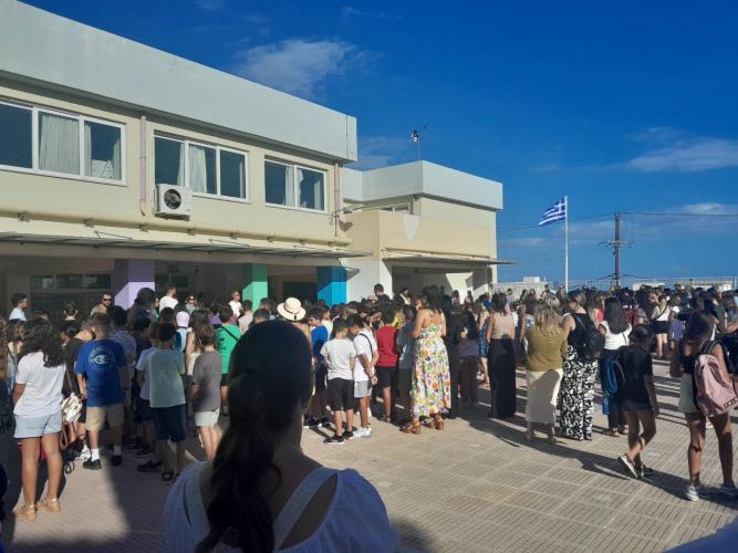 Γέμισε με όμορφα πρόσωπα, παιδικές φωνές, χαμόγελα χαρά και ξεγνοιασιά το 14ο Δημοτικό σχολείο Ρεθύμνης. Γονείς μαθητές και δάσκαλοι είχαν έρθει με κάθε καλή διάθεση στο φιλοπρόοδο σχολείο με τους καλαίσθητους χώρους και τις νεόδμητες και ευρύχωρες αίθουσες, προκειμένου να λάβουν την ευλογία του σεπτού ιερέως πατρός Γεώργιου Γαλεράκη, ο οποίος είχε έρθει για να τελέσει τον αγιασμό και να ευχηθεί στα παιδιά ‘καλή φώτιση’ . Ο διευθυντής του σχολείου κ. Κώστας Σάρος αφού καλωσόρισε τους προσερχομένους με εγκάρδια λόγια, τους παρουσίασε τους εκπαιδευτικούς και τους ευχήθηκε καλή σχολική χρονιά.