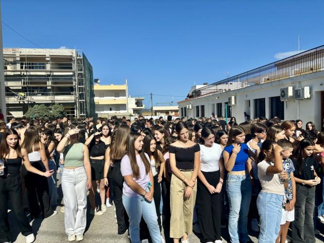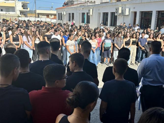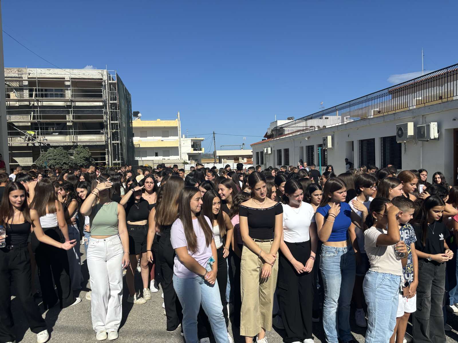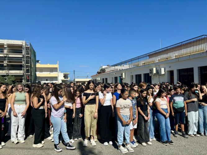 “Σήμερα, ξεκινά ένα νέο ταξίδι γεμάτο προκλήσεις, στόχους και ευκαιρίες για μάθηση. Αγαπητά μας παιδιά, πιστεύουμε σε εσάς γιατί εσείς εκπροσωπείτε το μέλλον και την ελπίδα αυτού του τόπου. Το σχολείο είναι το δεύτερο σας σπίτι, ένας χώρος όπου αποκτάτε γνώσεις και καλλιεργείτε αξίες όπως ο σεβασμός, η υπευθυνότητα και η αλληλεγγύη. Εκμεταλλευτείτε τις ευκαιρίες που σας προσφέρονται, βάλτε στόχους και απολαύστε αυτό το ταξίδι της μάθησης. Σας ενθαρρύνω επίσης να εκφράζετε τις σκέψεις σας και να συμμετέχετε ενεργά στο διάλογο, γιατί η γνώμη σας έχει μεγάλη σημασία για όλους εμάς. Είμαστε εδώ για να σας ακούσουμε και να στηρίξουμε τις προσπάθειές αλλά και τις ανησυχίες σας."