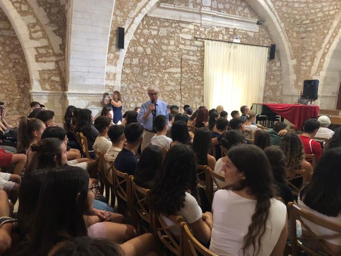 Κεντρικός Ομιλητής της Εκδήλωσης ήταν ο Δρ. Γεώργιος Πρεβελάκης, Ομότιμος Καθηγητής Γεωπολιτικής στο Πανεπιστήμιο Panthéon-Sorbonne (Paris 1), ο οποίος ανέλυσε το θέμα: «Κρήτη, Ανατολική Μεσόγειος – Γεωγραφία και Γεωπολιτική μέσα σ΄ ένα περιβάλλον κλιματικών αλλαγών». Στη συνέχεια ο Δρ. Γεώργιος Πρεβελάκης απάντησε στα ερωτήματα γεωπολιτικού ενδιαφέροντος που έθεσαν οι μαθητές και οι μαθήτριες.